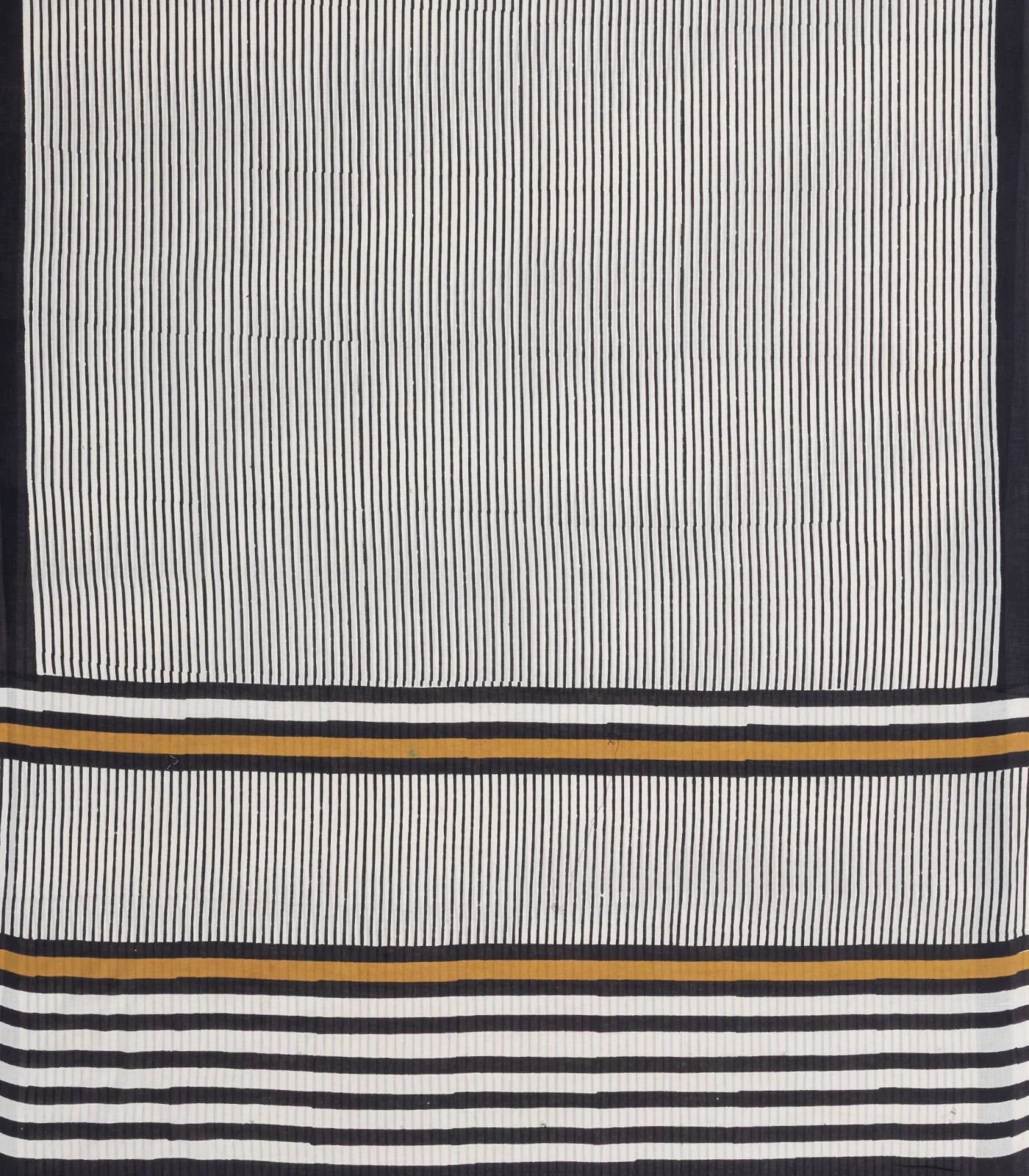 Off White Printed Jaipur Cotton Saree With Black Stripes-JC1572