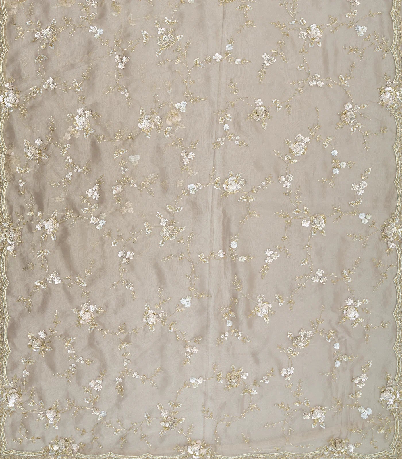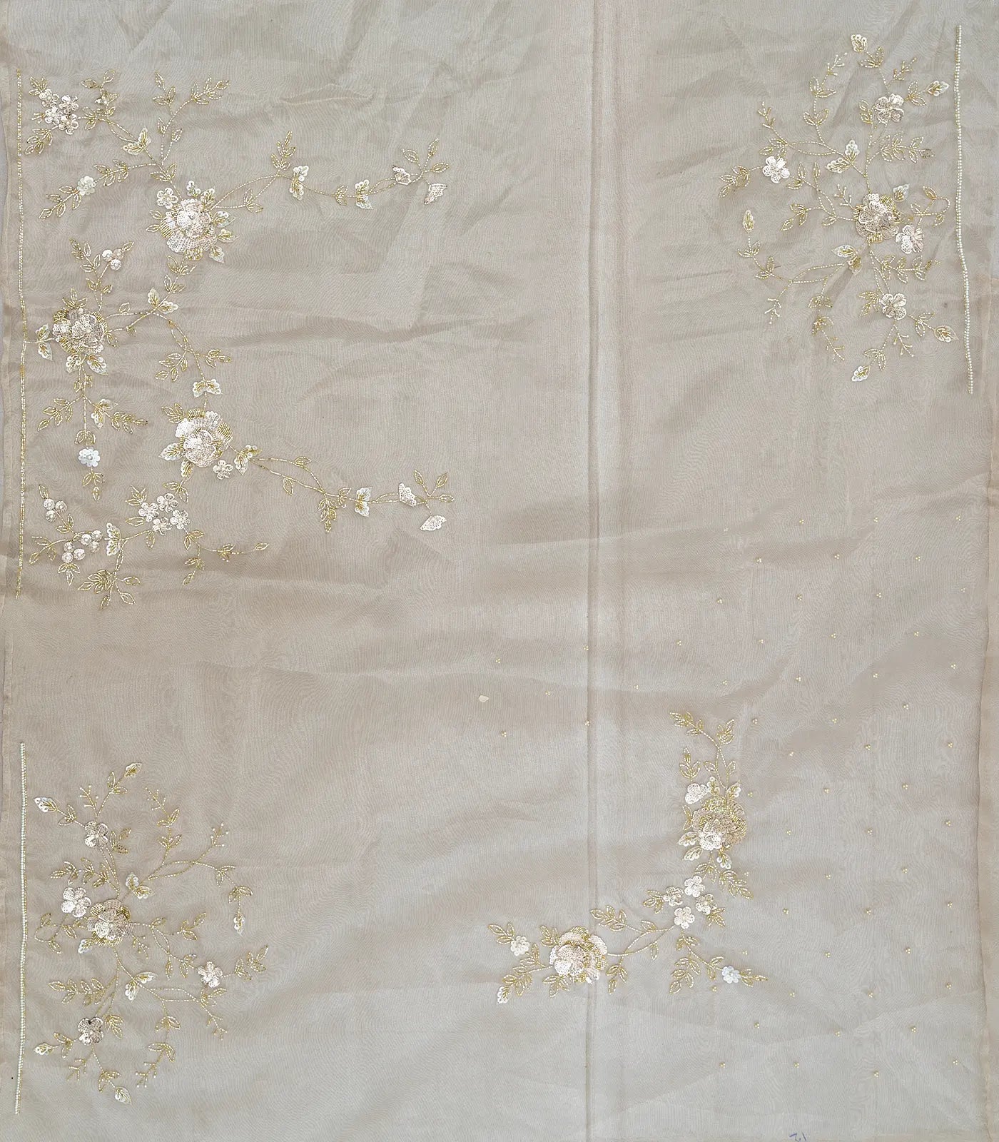 Off White Woven Organza Silk Saree With Hand Embroidered Motifs-EN1798