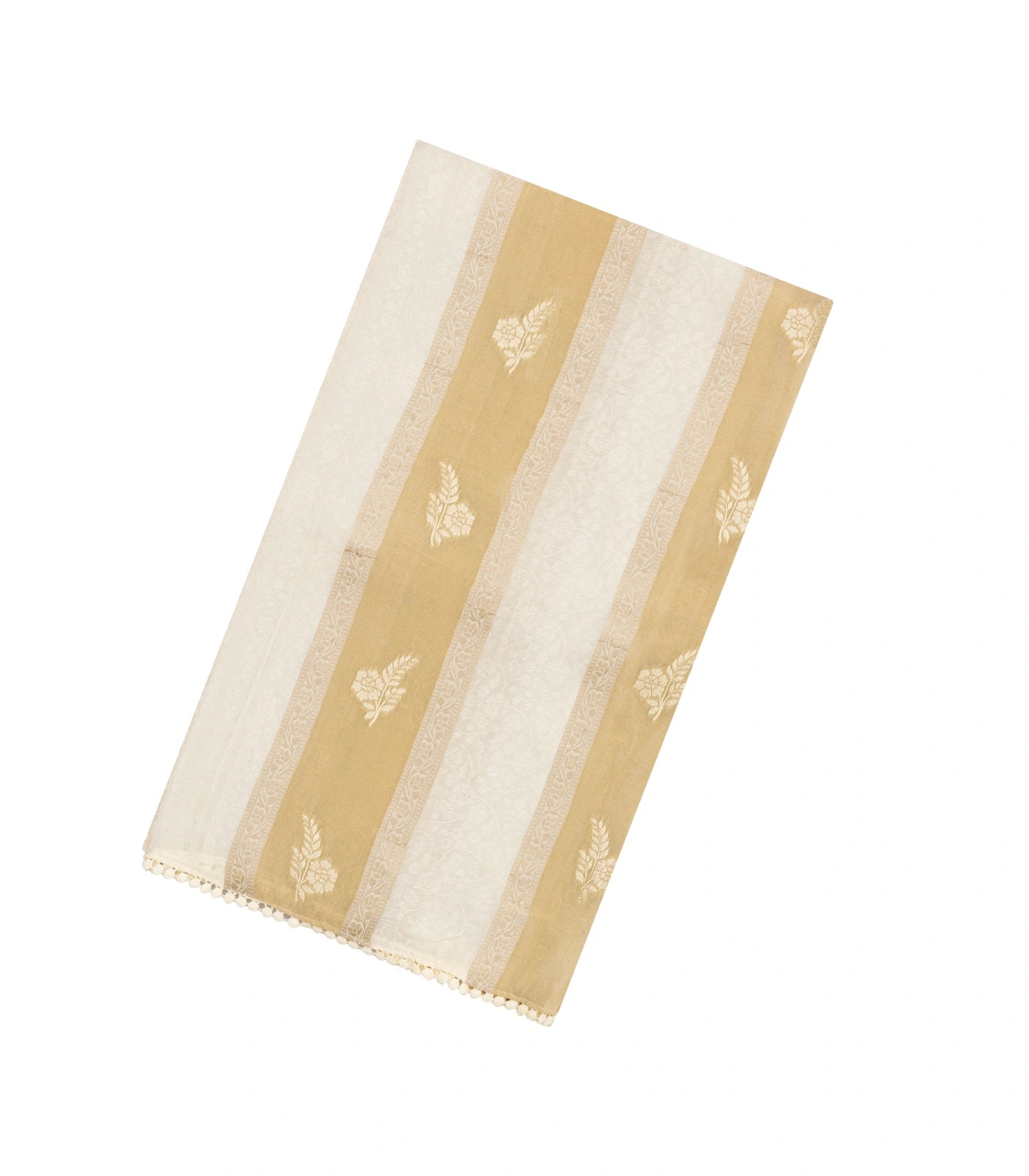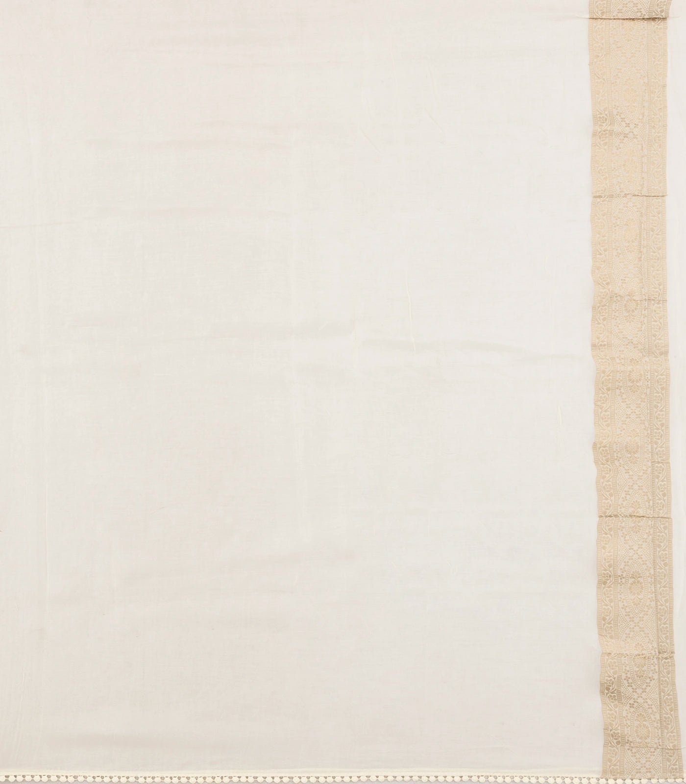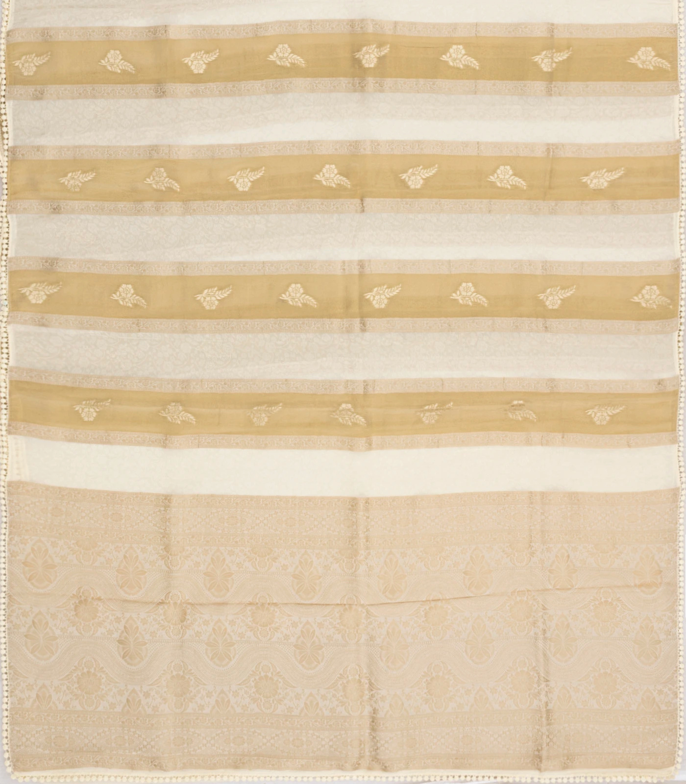 Off White Woven Synthetic Satin Saree With Floral Zari Motifs-BL4855