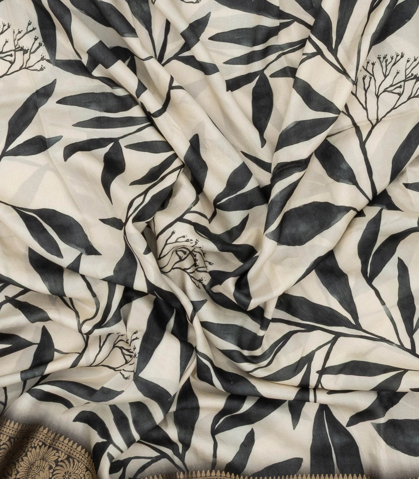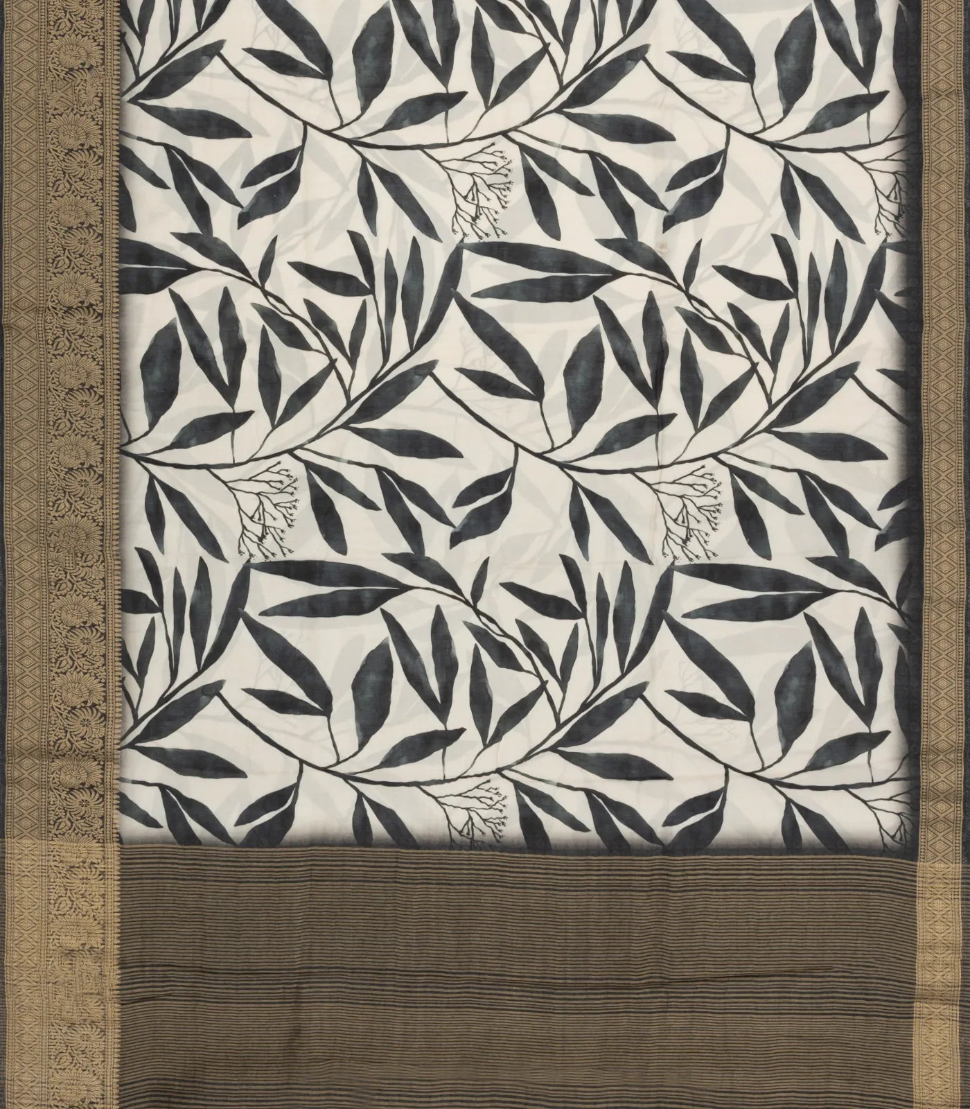 Off White Woven Synthetic Viscose Saree With Printed Floral Motifs-BL4924