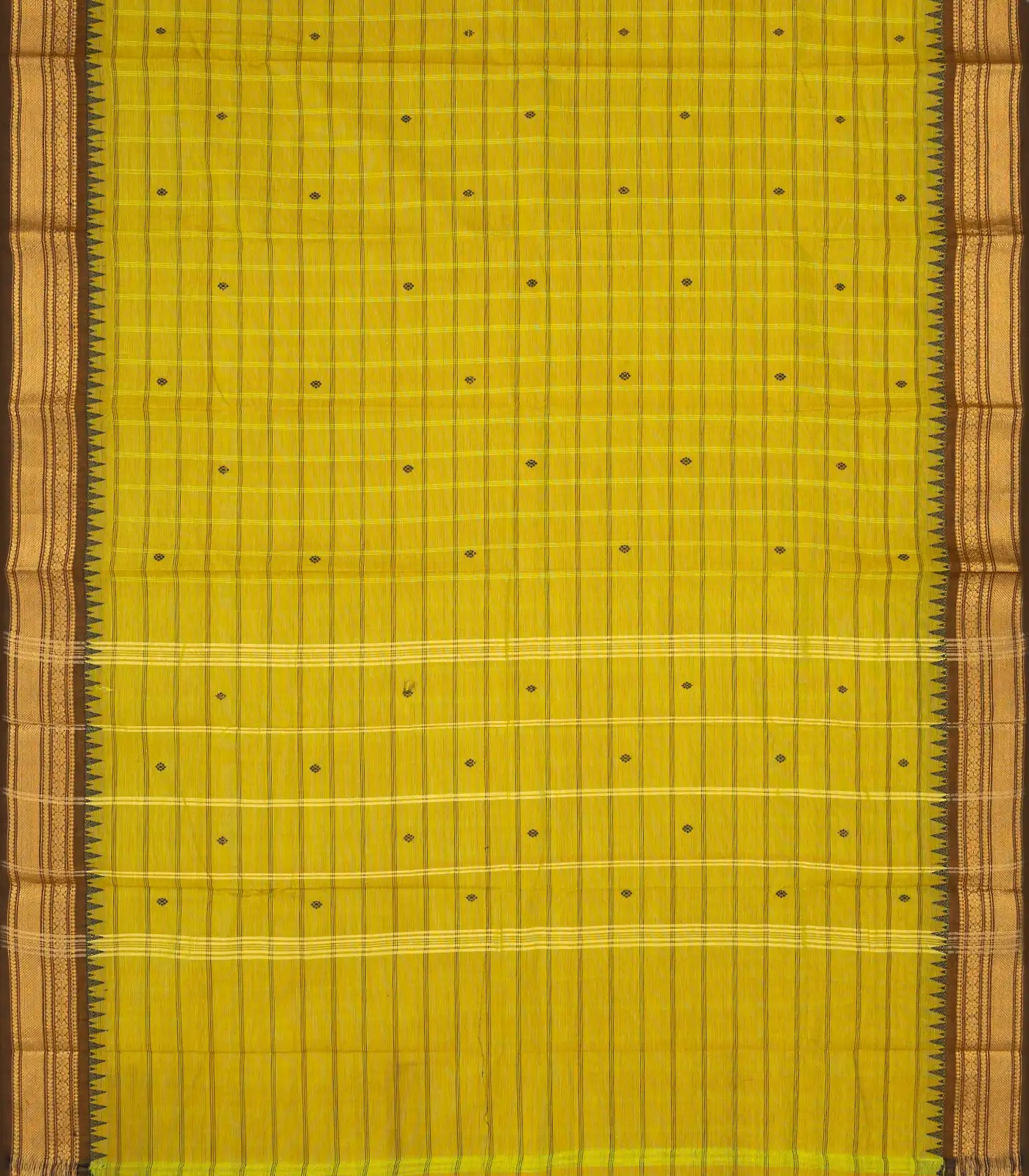 Oil Mustard Woven Chettinad Cotton Saree With Checks & Buttas-CN1788