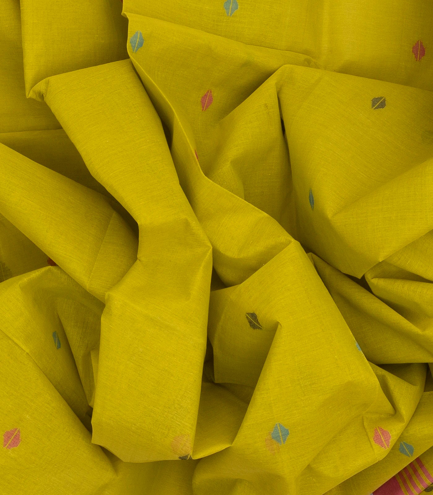 Olive Green Bengal Cotton Saree With Diamond Motifs