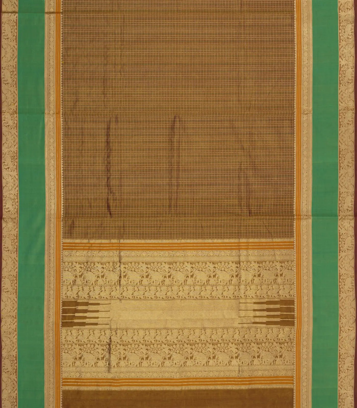 Olive Green Handloom Silk Cotton Saree With Checks-SC4211