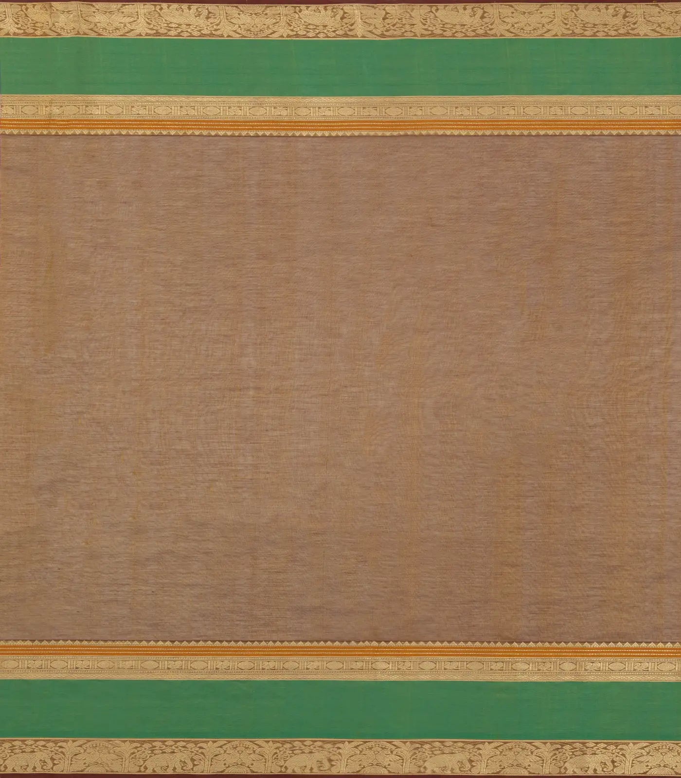 This handwoven silk cotton saree is filled with checks in olive green body along with border and pallu-SC4211