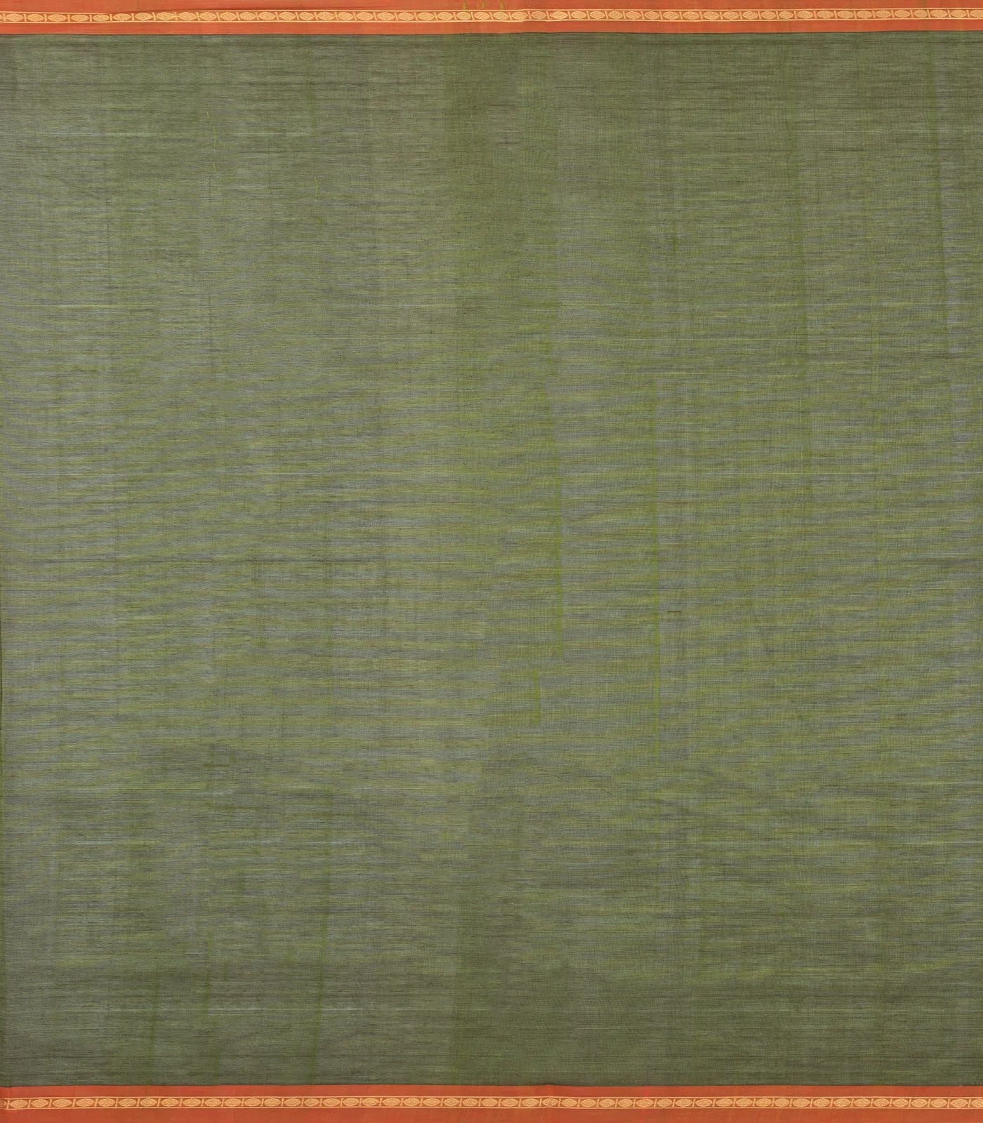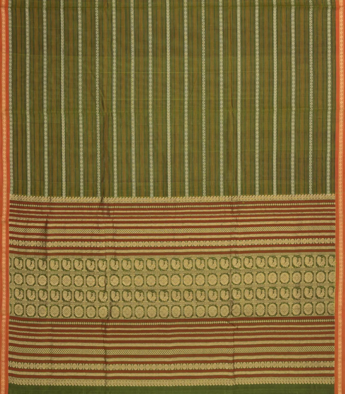 Olive Green Handloom Silk Cotton Saree With Stripes-SC3935