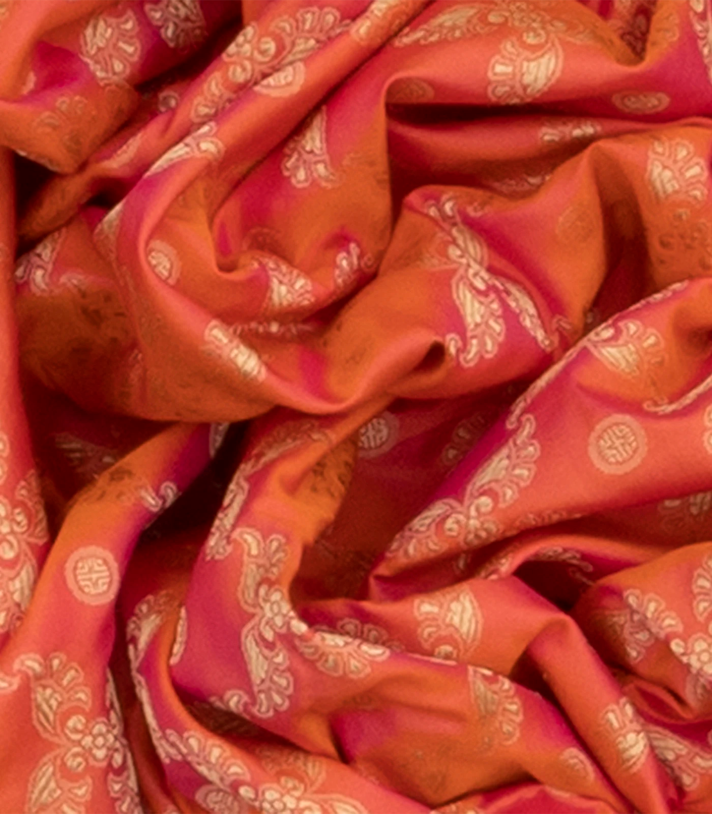Orange Handloom Banarasi Silk Saree With Floral Jaal Motifs-Orange
