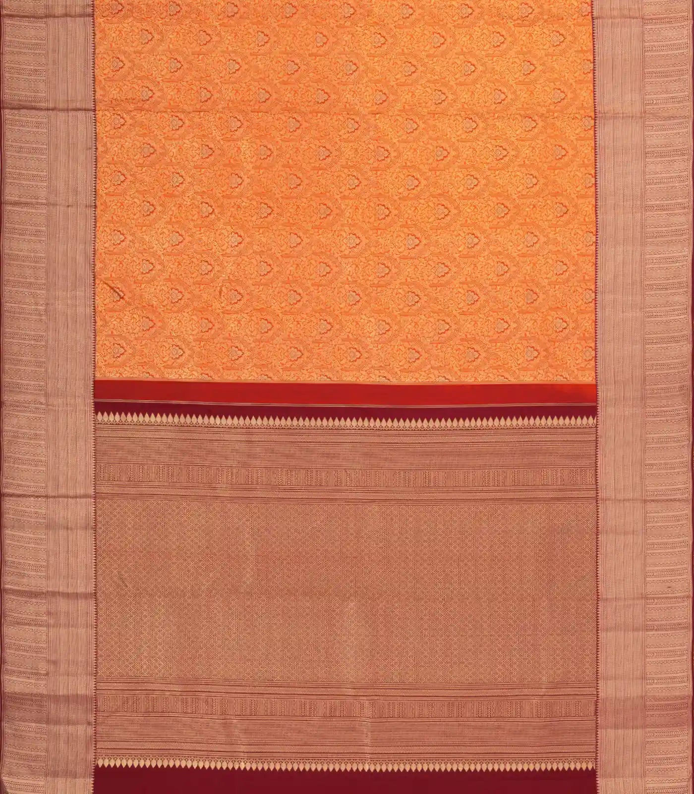 Orange Handloom Kanchipuram Silk Saree With Meena Floral Motifs-KA14752