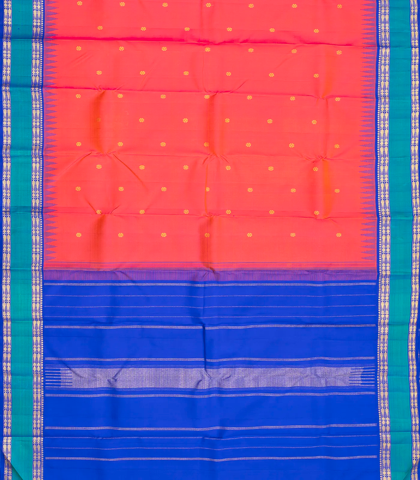 Orange Handloom Korvai Kanchipuram Silk Saree With Buttas & Temple Border-KA12540