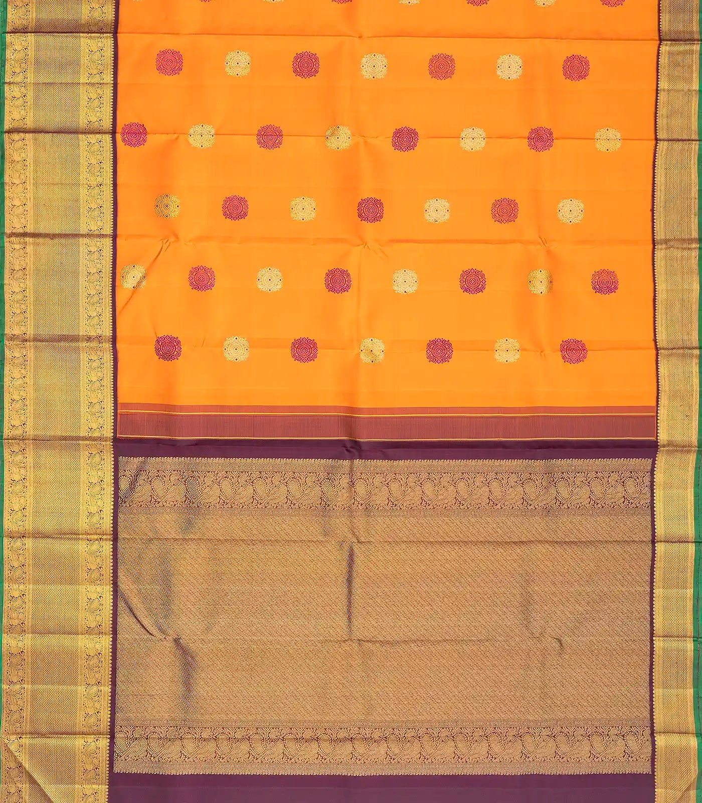 Orange Handloom Korvai Kanchipuram Silk Saree With Meena Buttas-KA12974