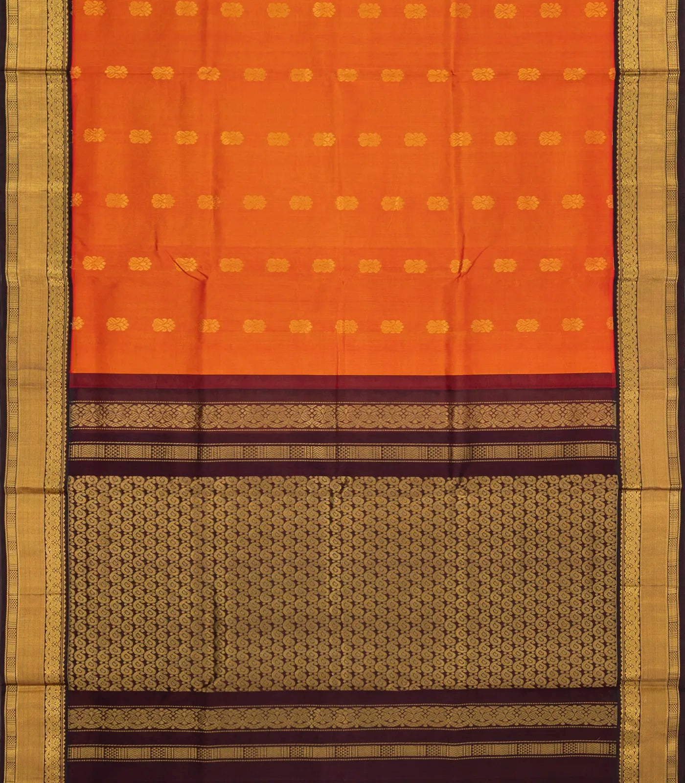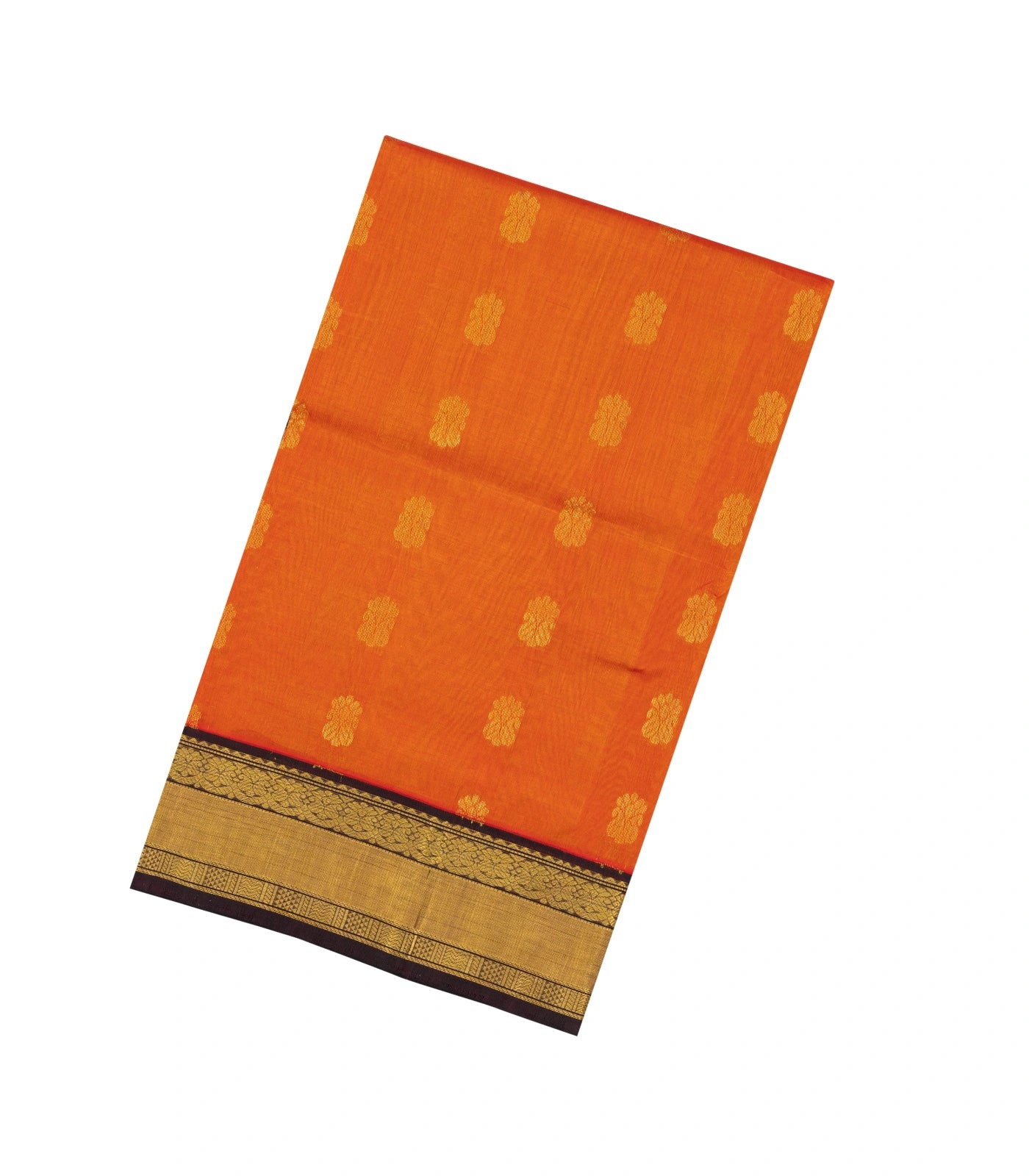 Orange Handloom Korvai Silk Cotton Saree With Buttas & Contrast Border-SC3831