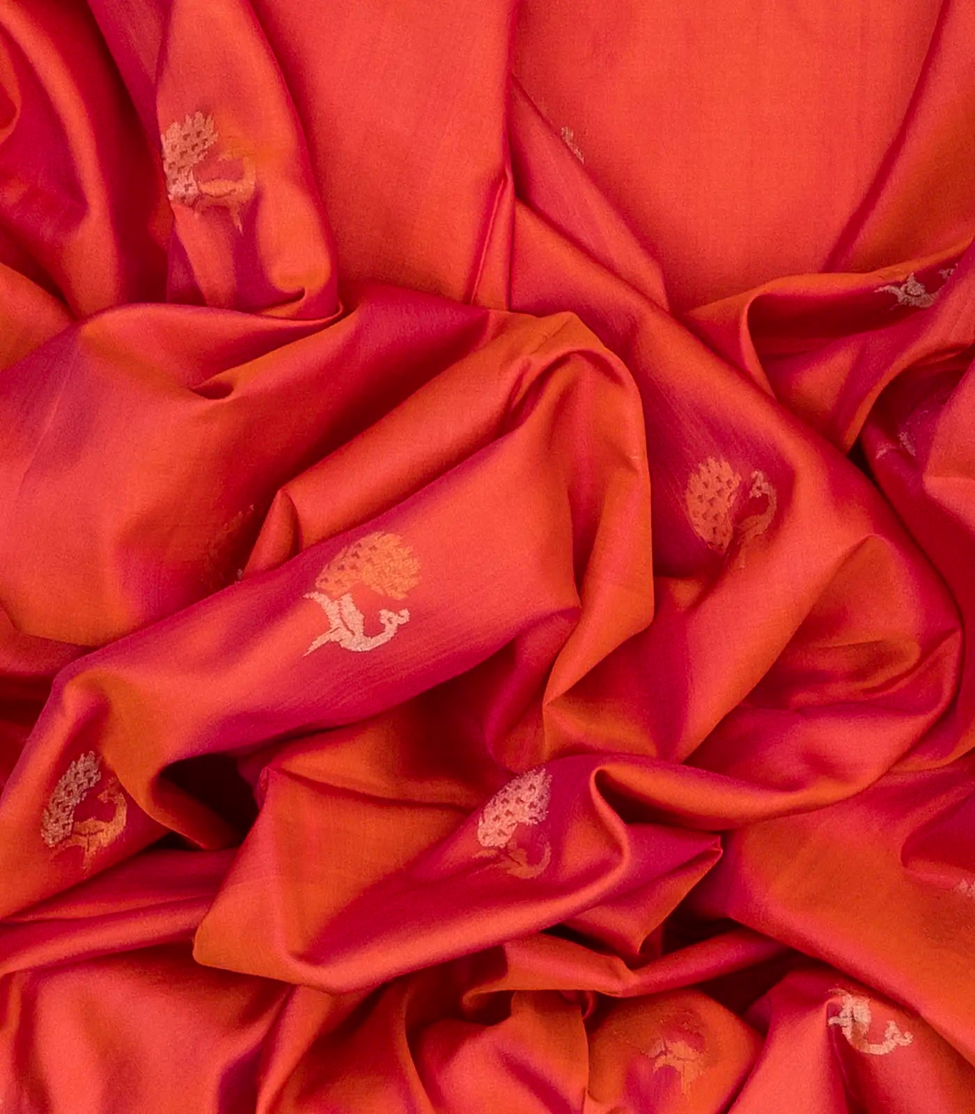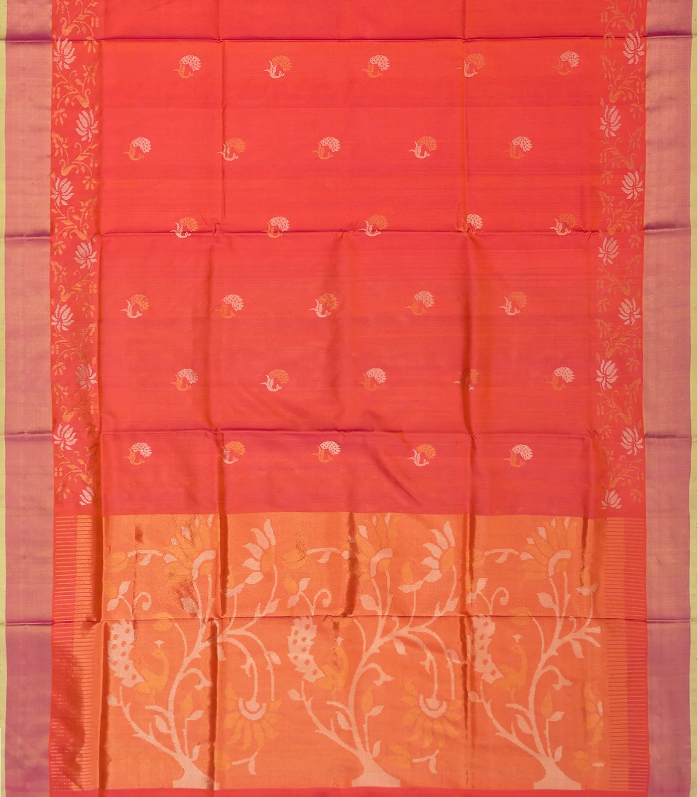 Orange Handloom Uppada Silk Saree With Annam Buttas-UP0341
