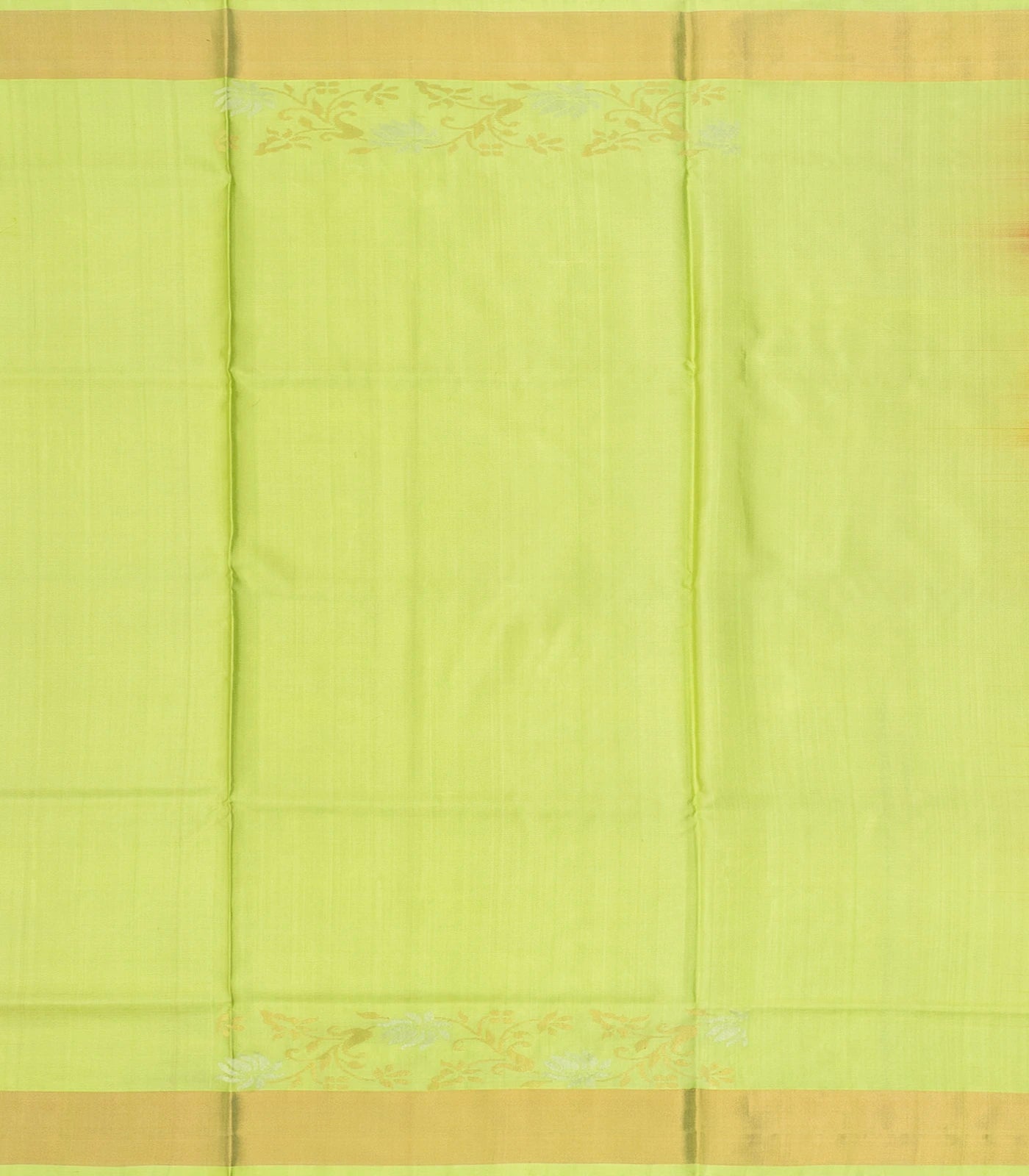 This handwoven uppada silk saree is filled with annam buttas in orange body along with floral border and pallu