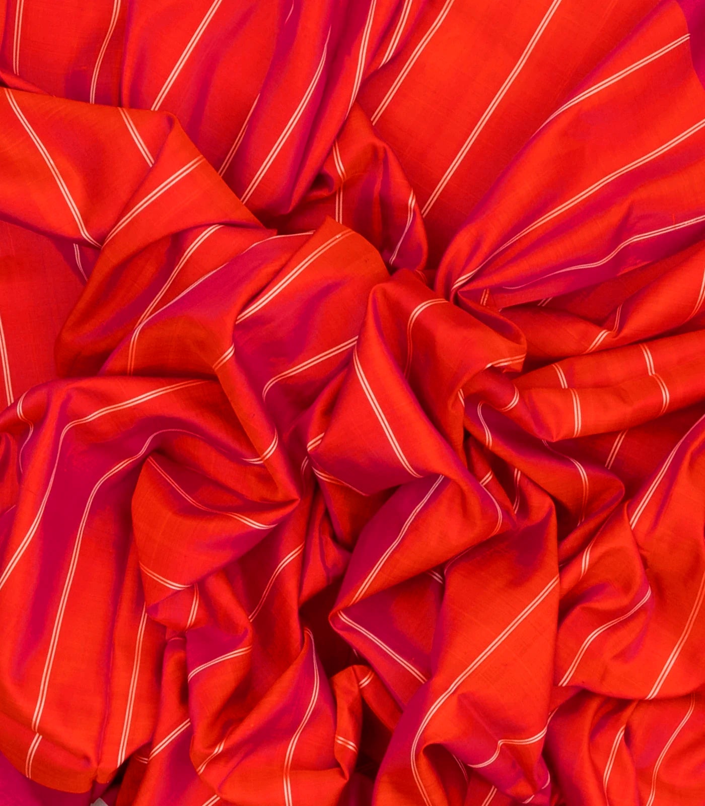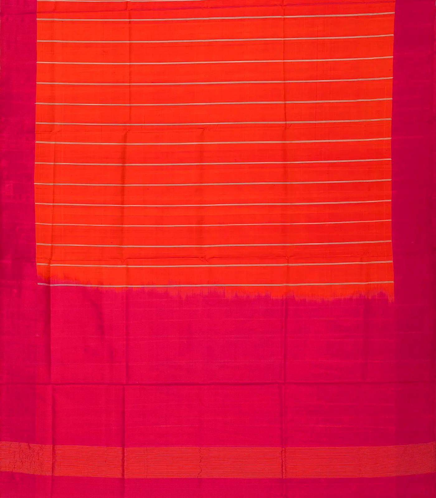 This handwoven uppada silk saree is filled with stripes in orange body along with plain border and pallu