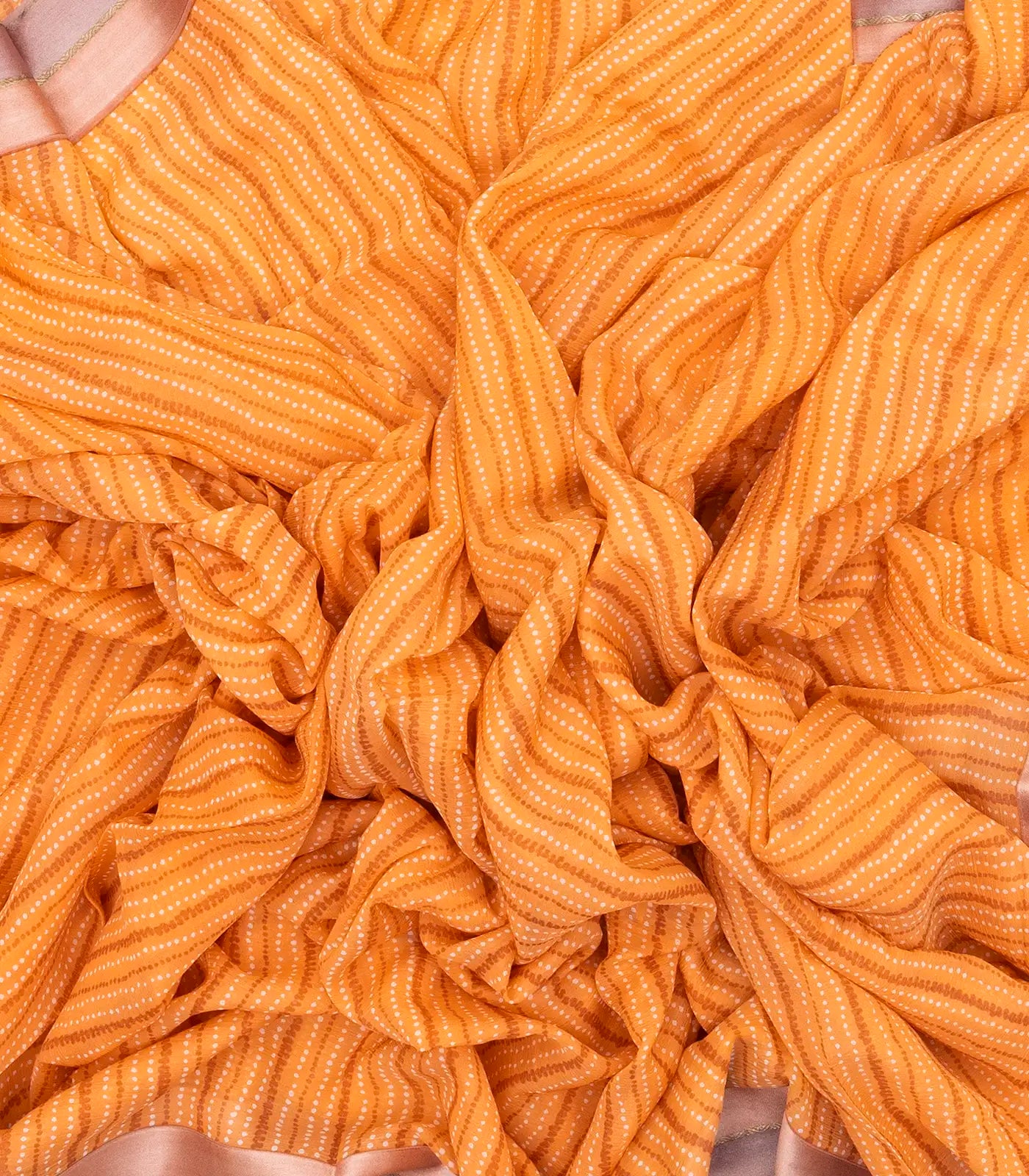 Orange Handwoven Banarasi Georgette Silk Saree With Dotted Motifs
