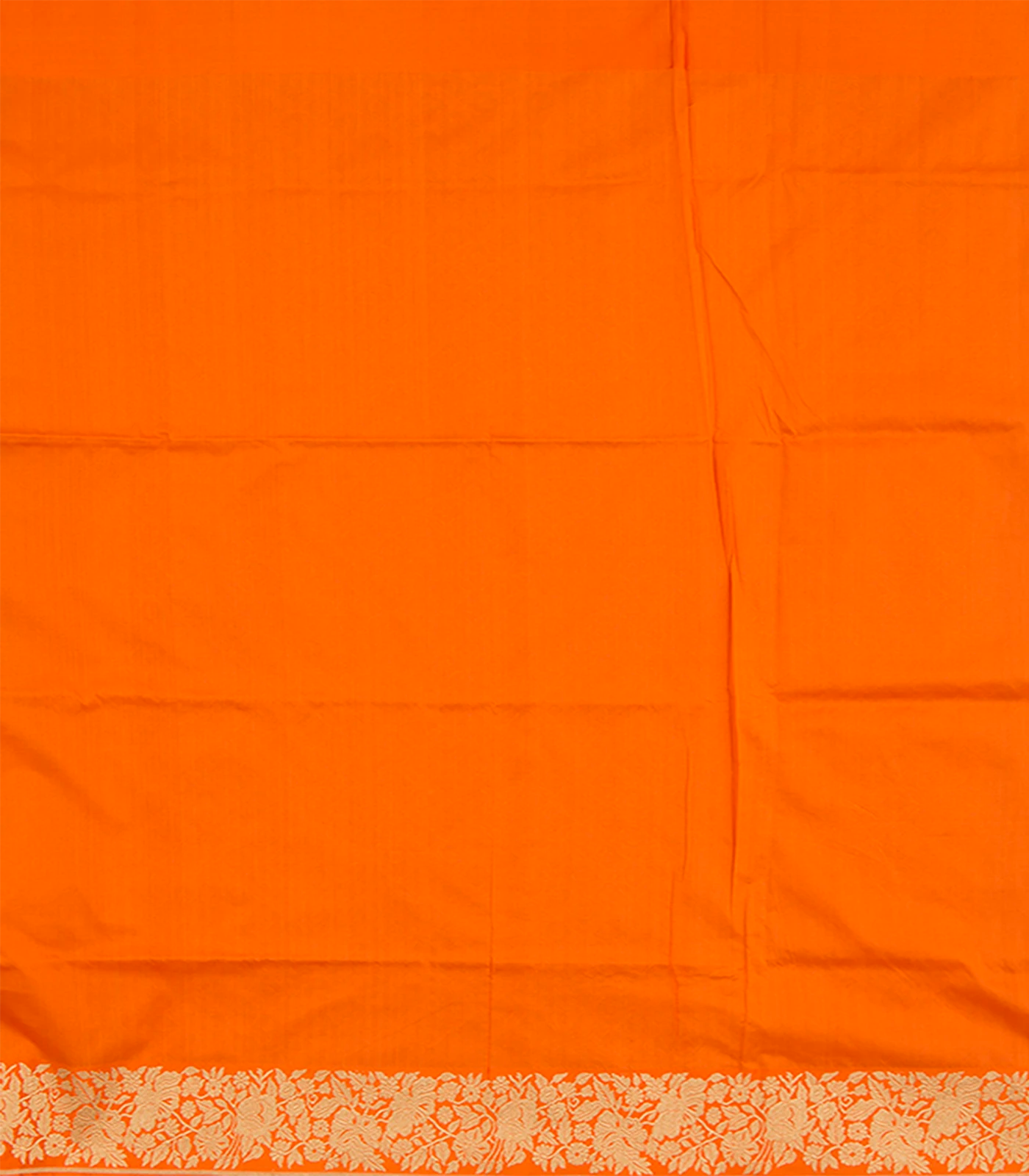 Orange Handwoven Benares Silk Saree With Floral Motifs On Border And Pallu