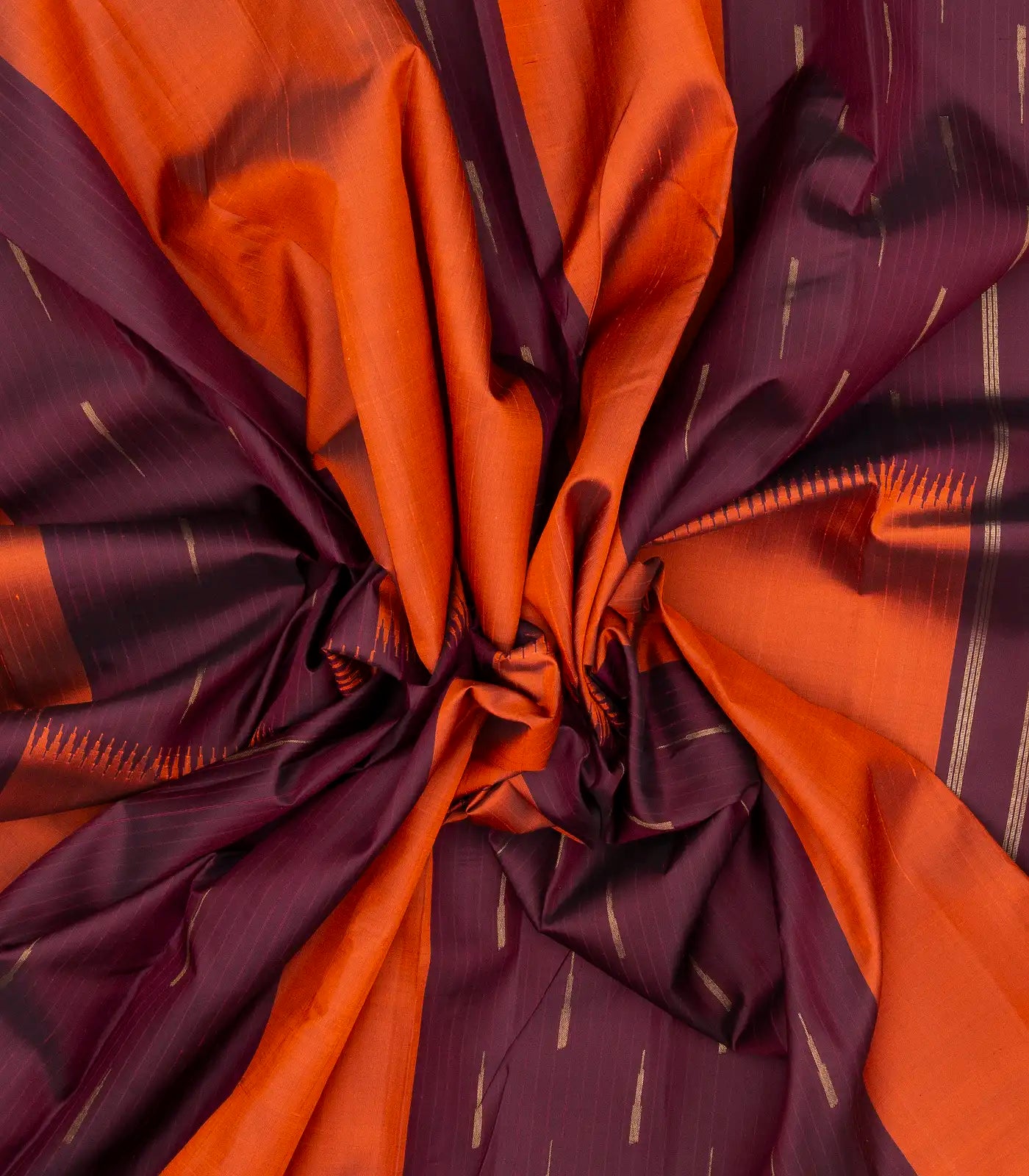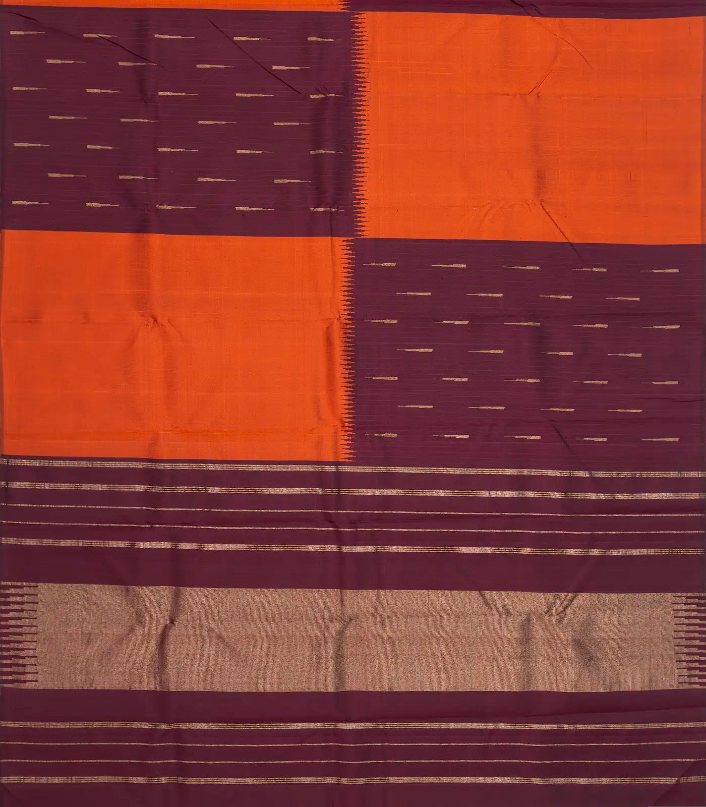 Orange & Maroon Handloom Korvai Kanchipuram Half & Half Silk Saree With Buttas-KA13020