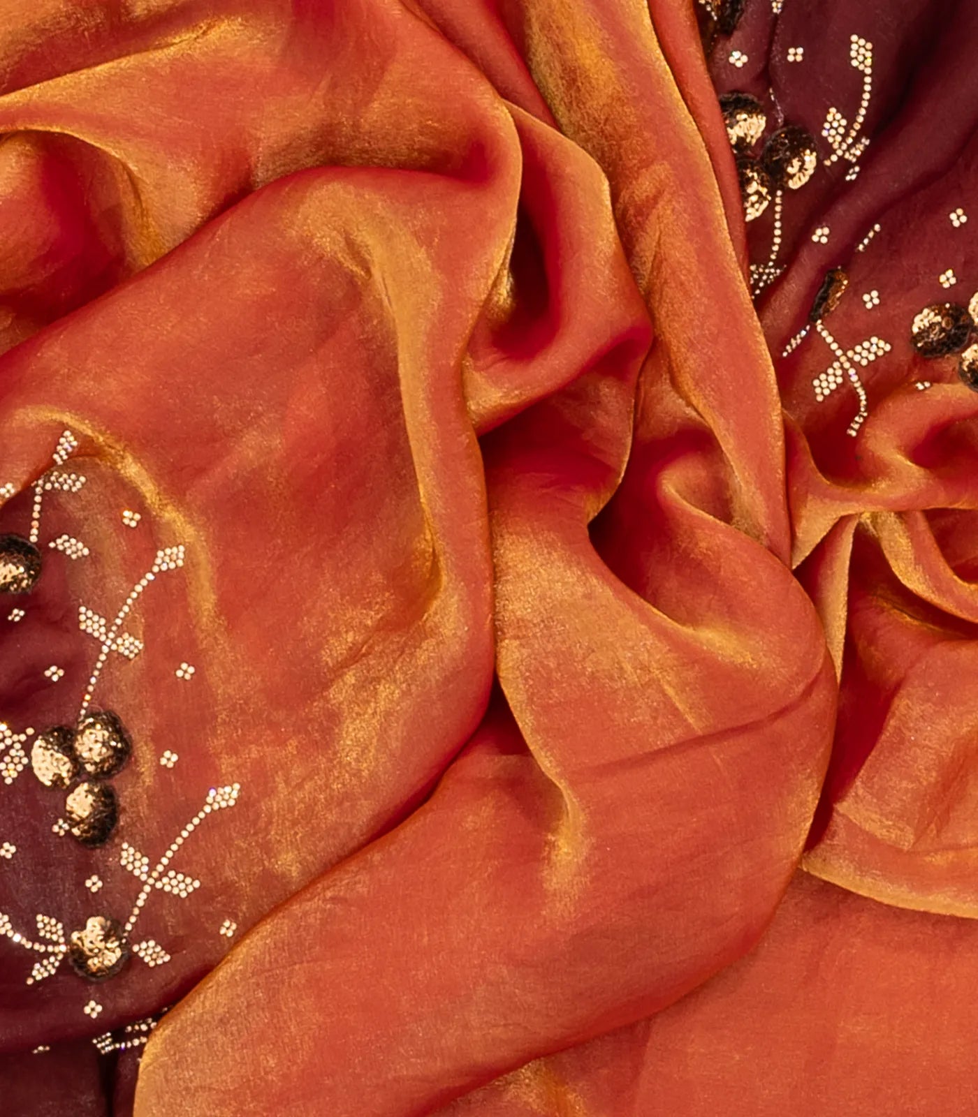 Orange Woven Blended Tissue Saree With Embroidered Floral Motifs-EN1912