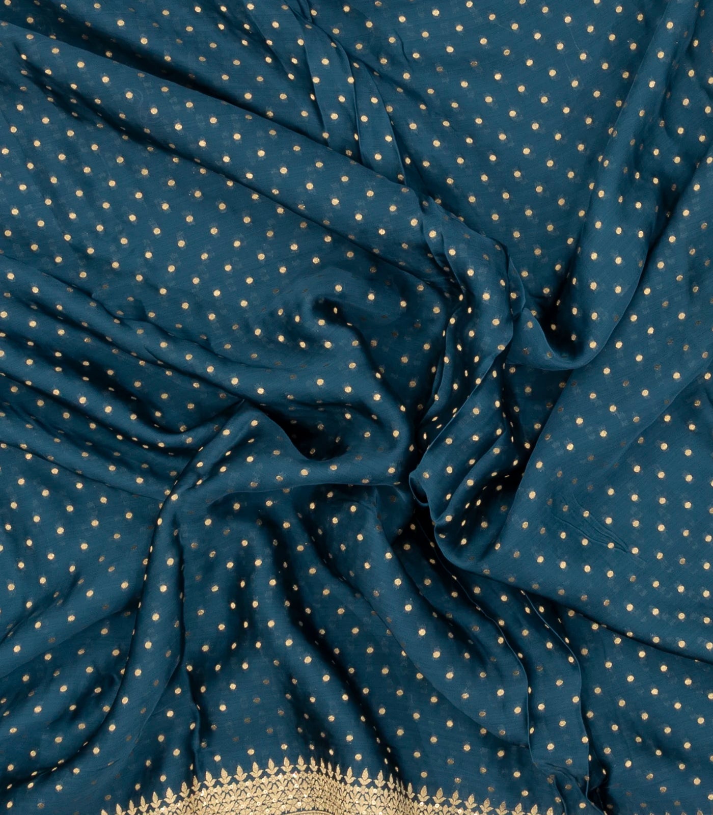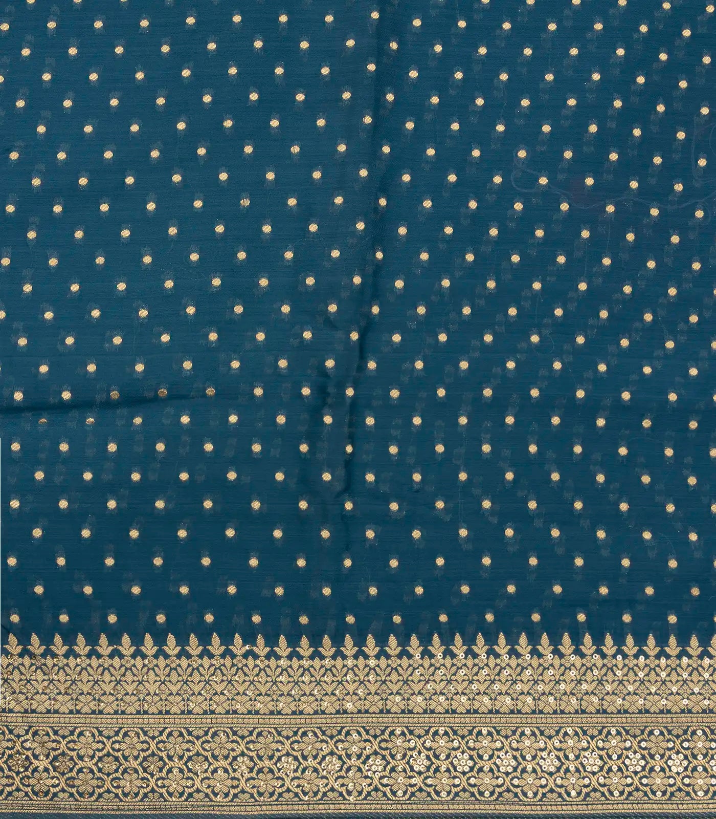 This woven blended tissue saree is filled with embroidered floral motifs in orange body along with pallu
