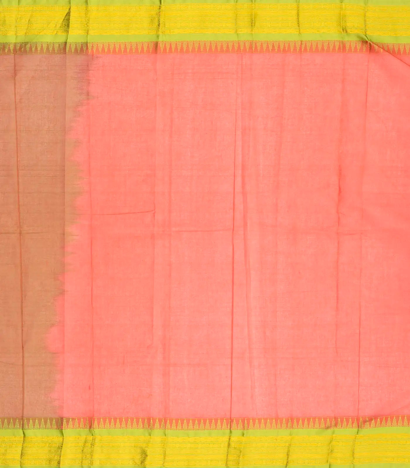 Orange Woven Chirala Cotton Saree With Zari Buttas & Contrast Temple Border-CR1291