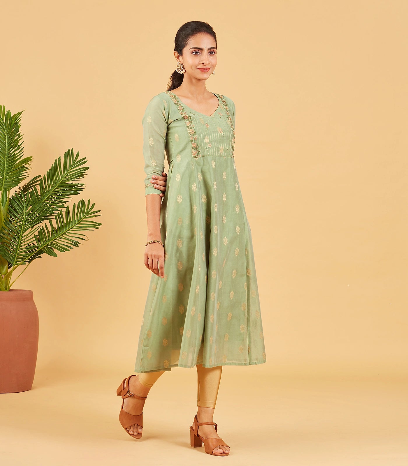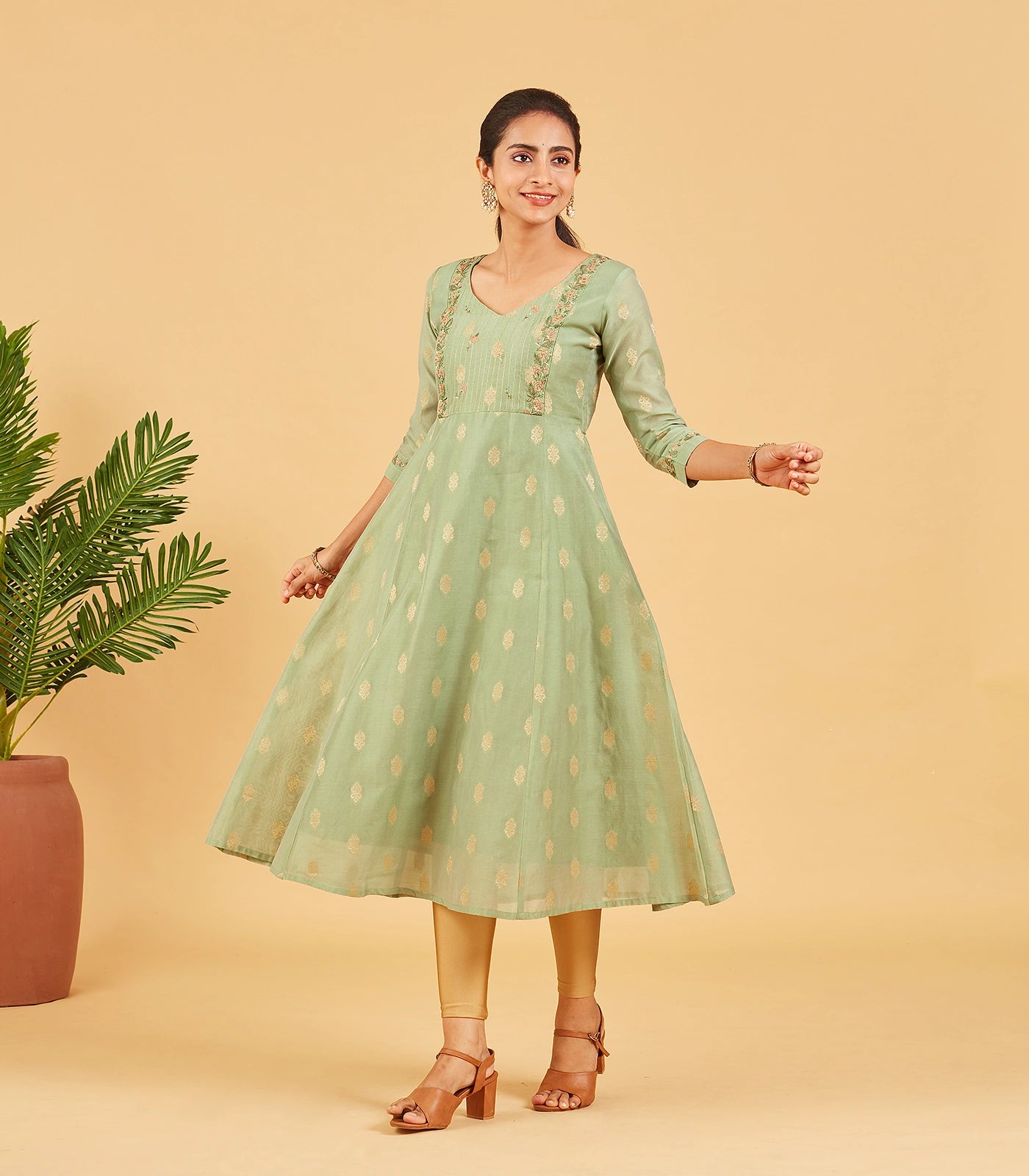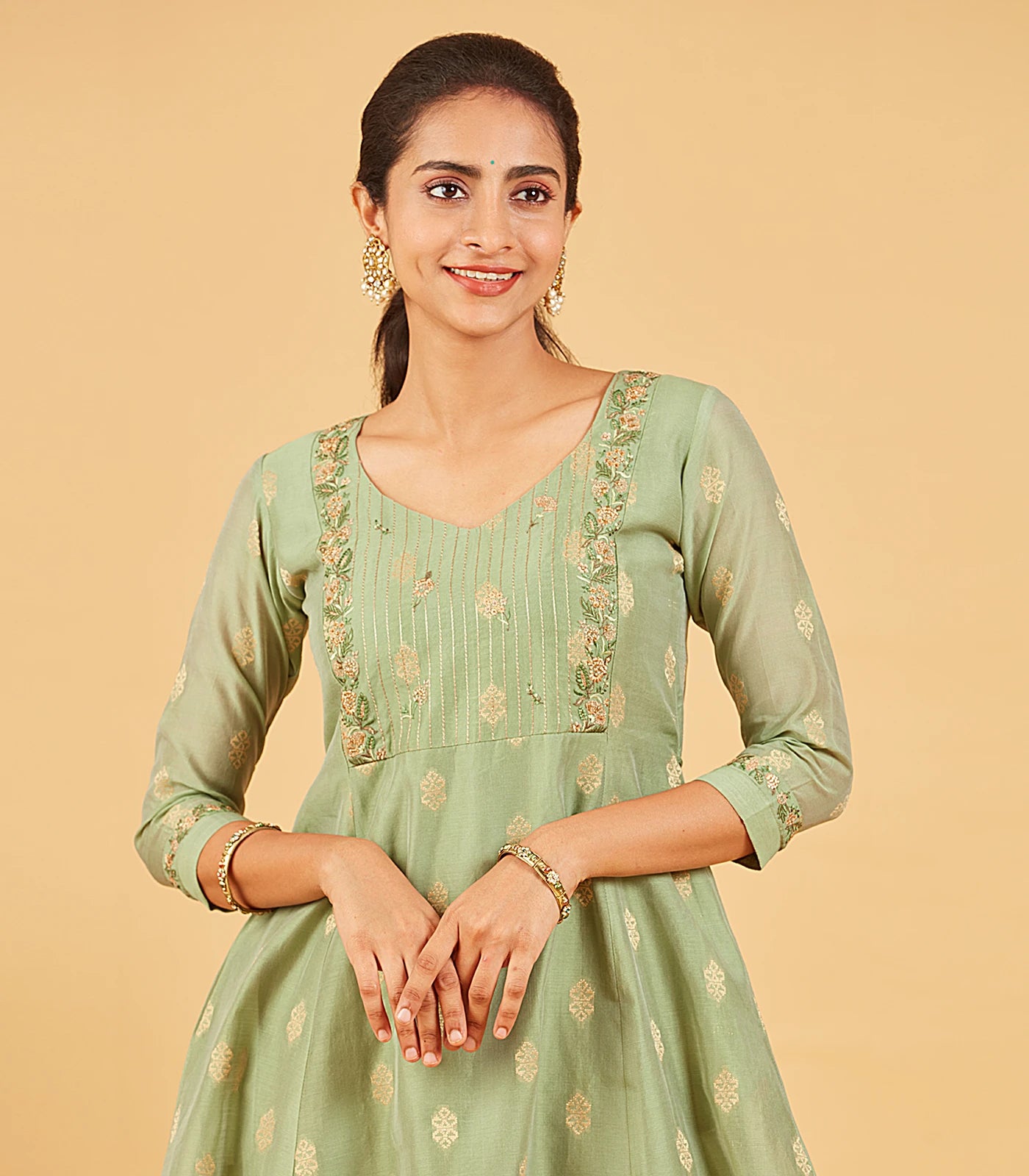 ¾th Length Sleeve With Floral Embroidery At Sleeve Hem
