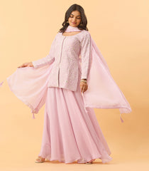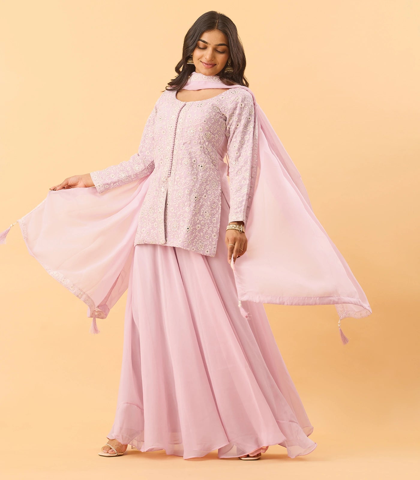 Long-sleeved short kurta with intricate embroidery detailing all over.