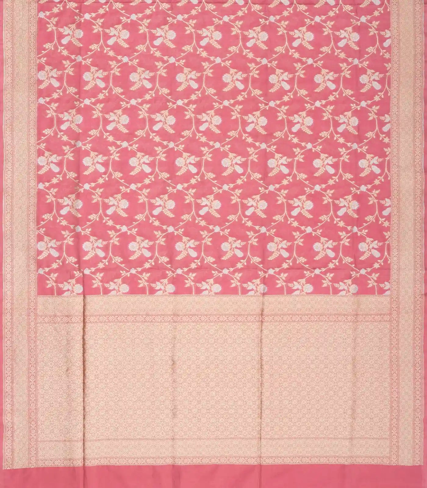 Peach Handloom Banarasi Silk Saree With Floral Motifs-BE1424