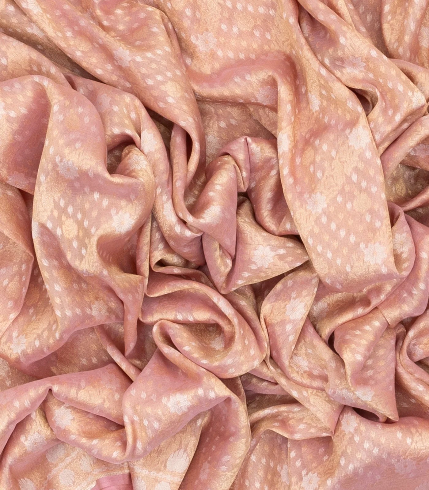 This handwoven banarasi silk saree is filled with floral motifs in dusty pink body along with border and pallu