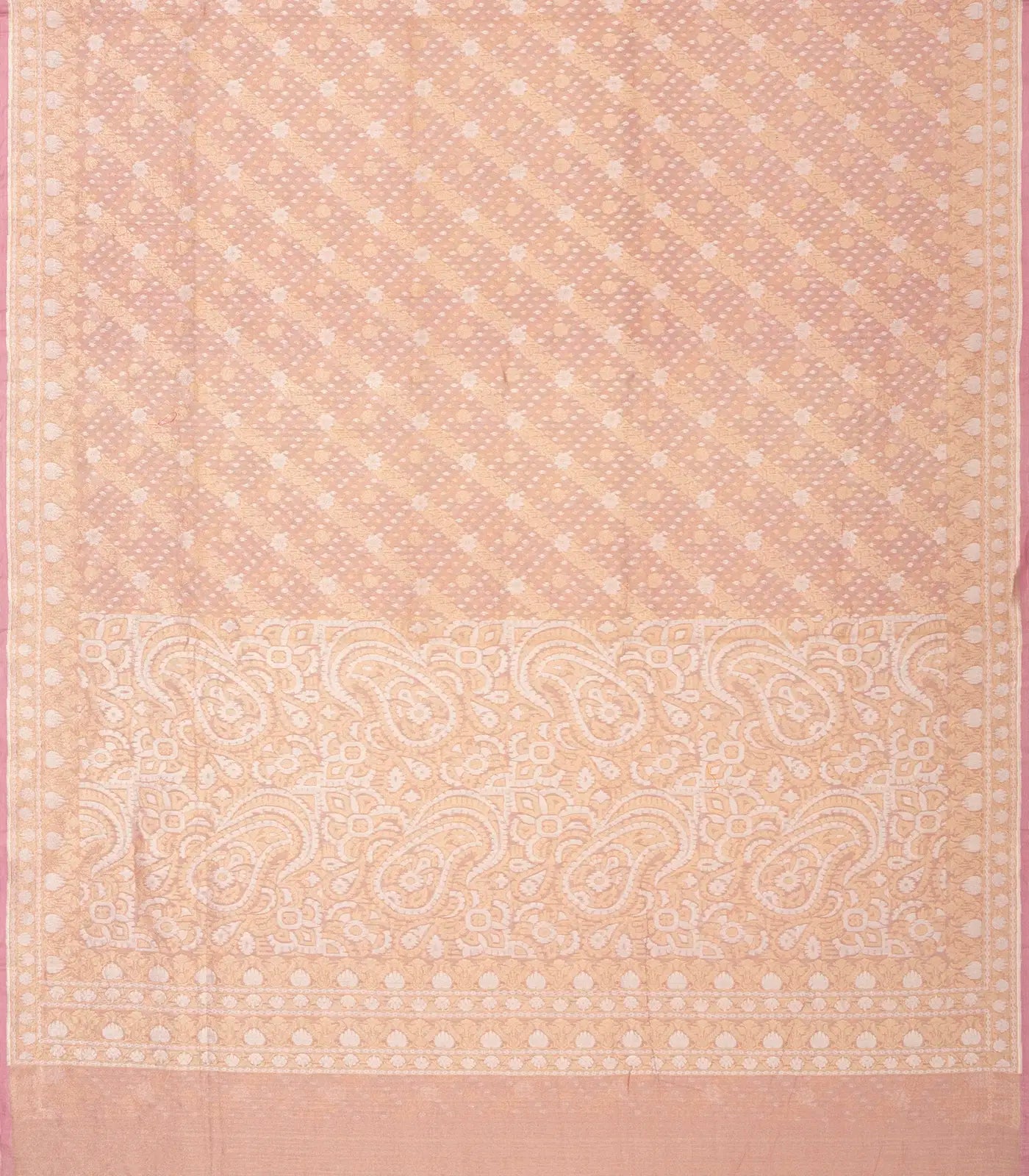 Peach Handloom Banarasi Tissue Silk Saree With Floral Motifs-BE1289