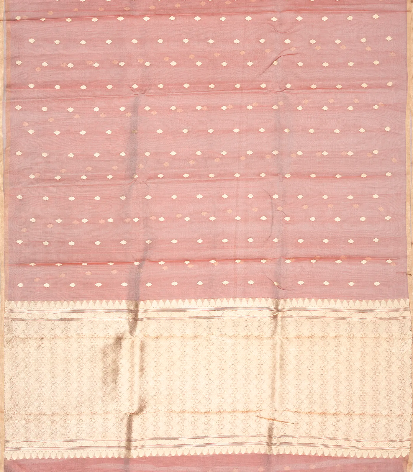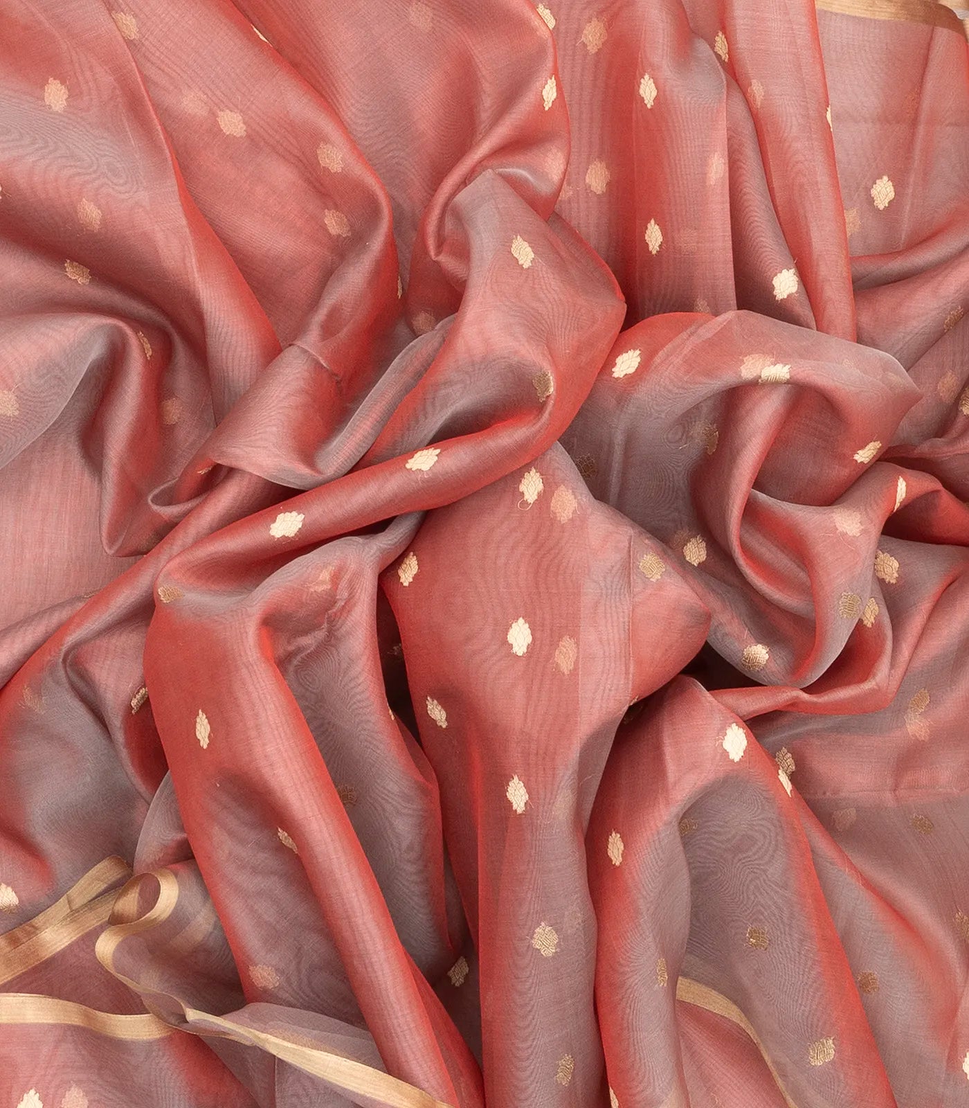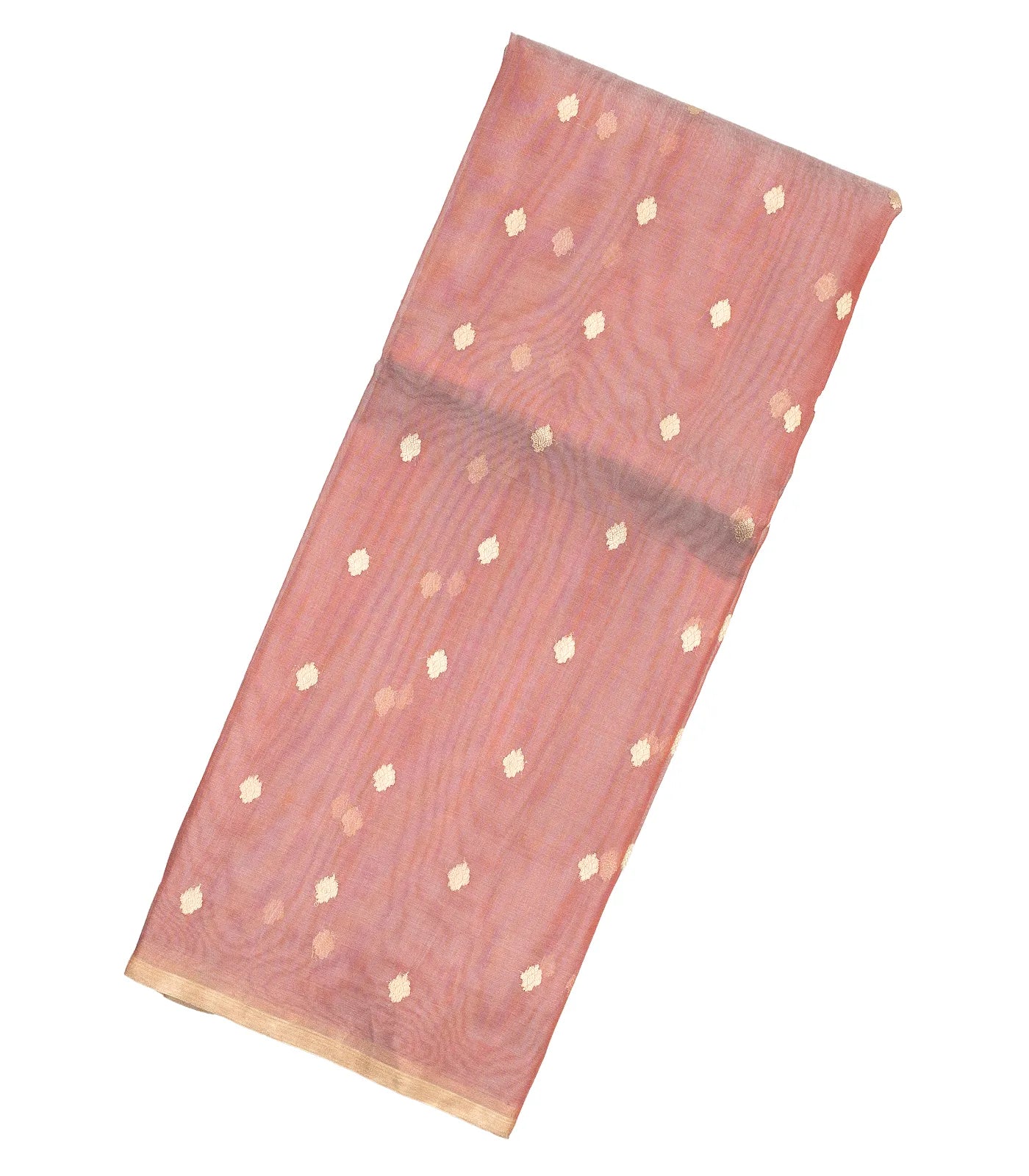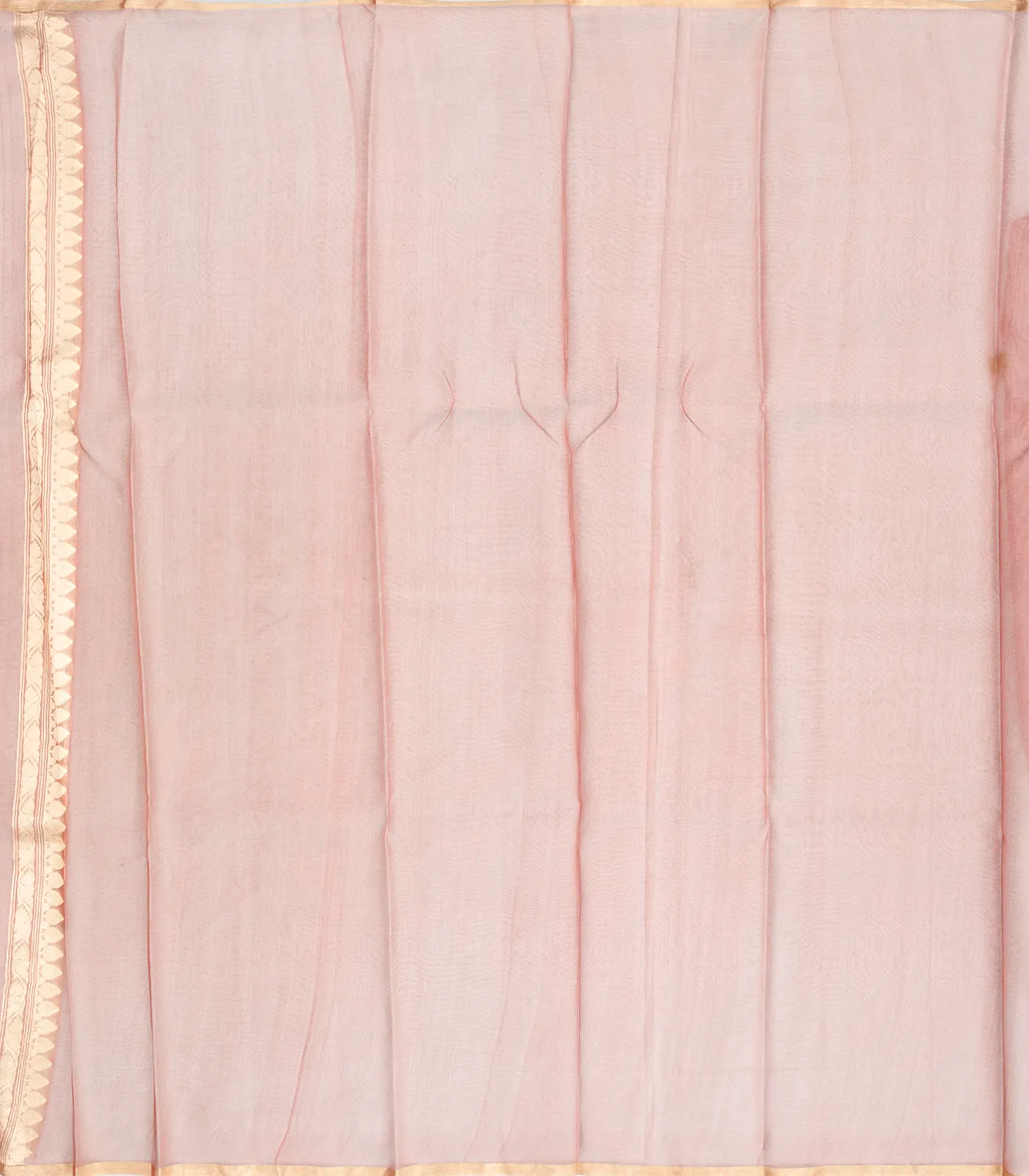 Peach Handloom Banarasi Tissue Silk Saree With Floral Motifs-BE1650