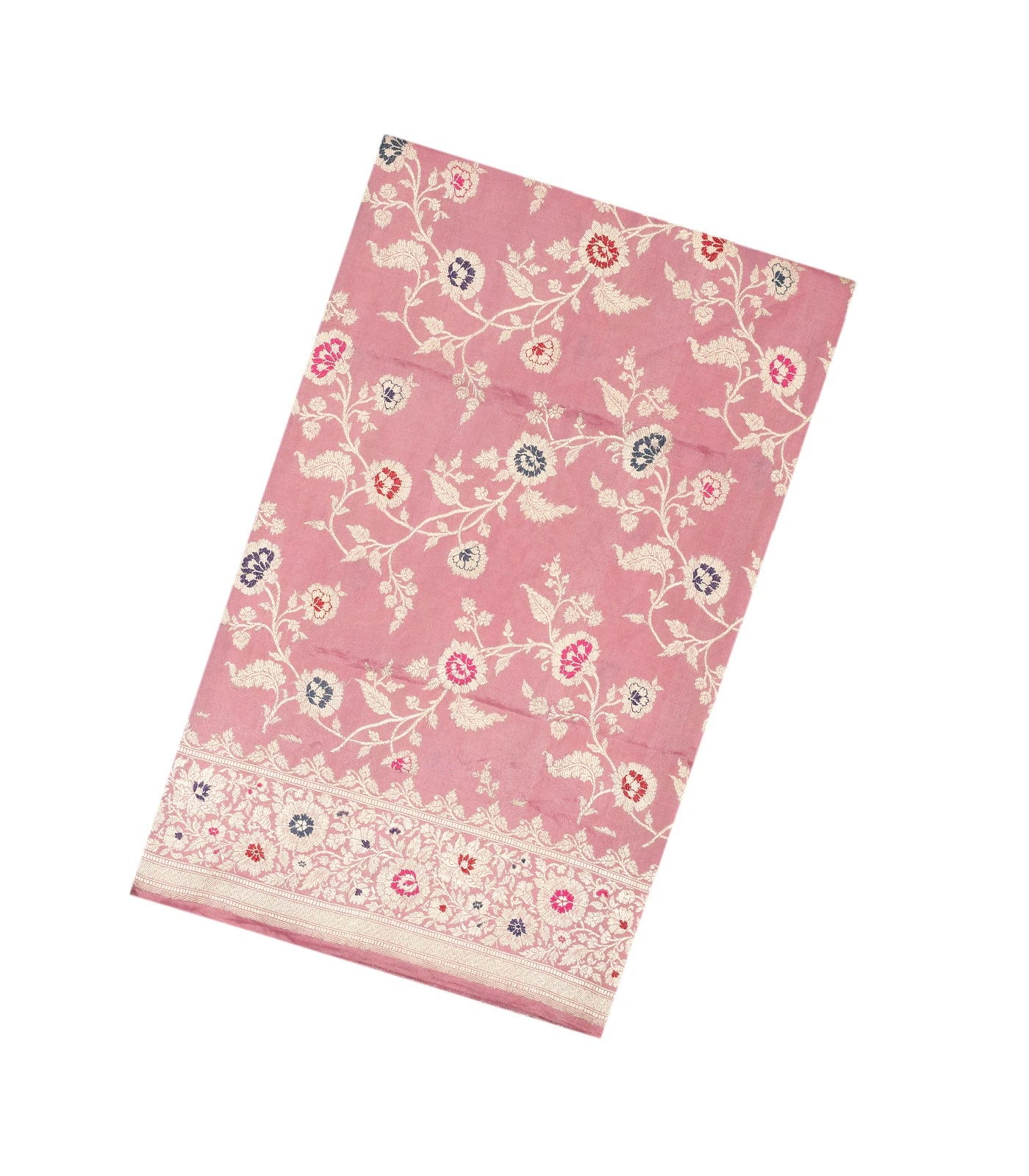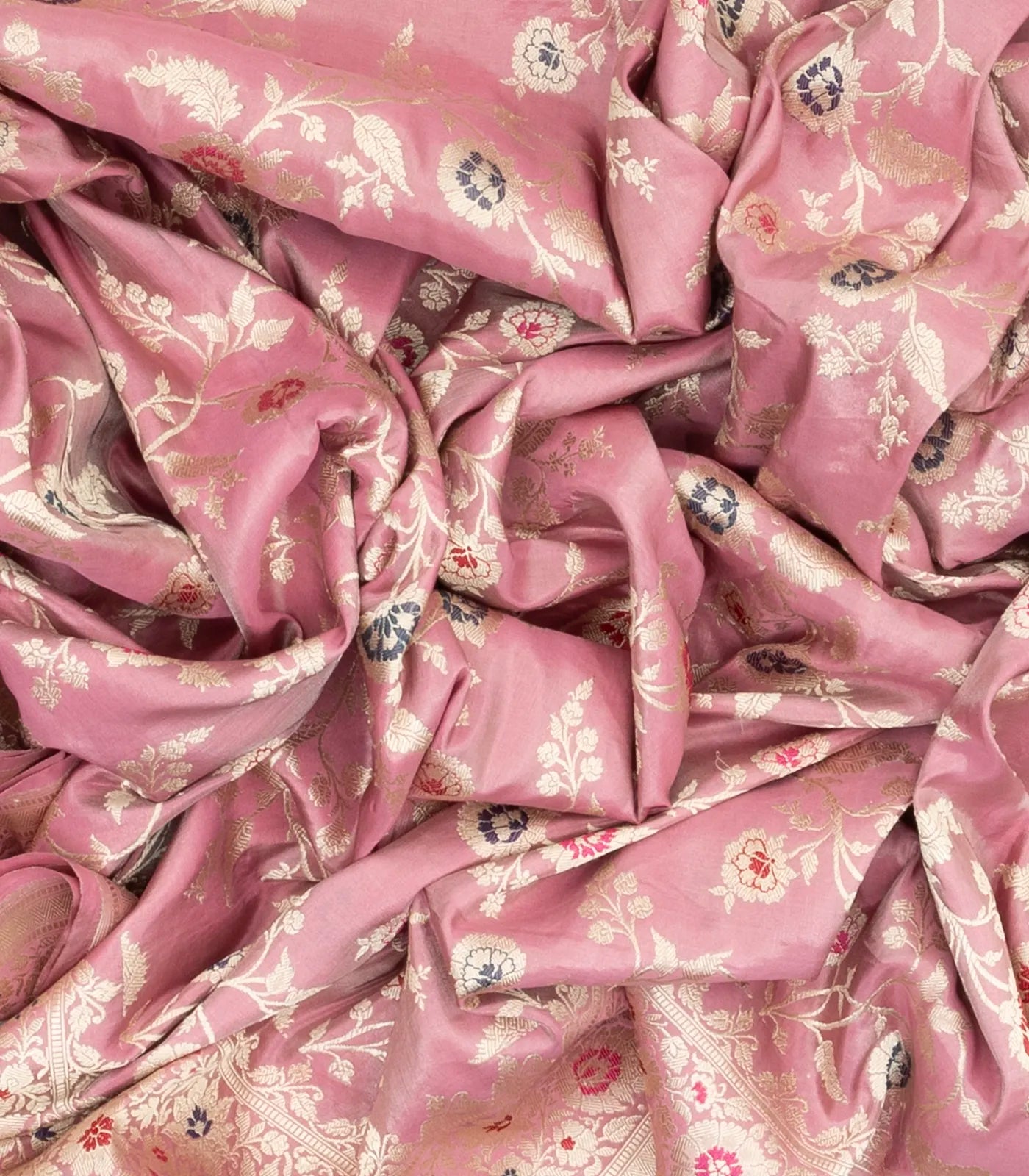 Peach Handloom Banarasi Tissue Silk Saree With Meena Floral Motifs-BE1302