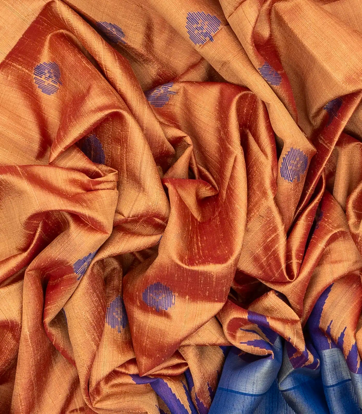 Peach Handloom Dupion Silk Saree With Floral Buttas-TU2586