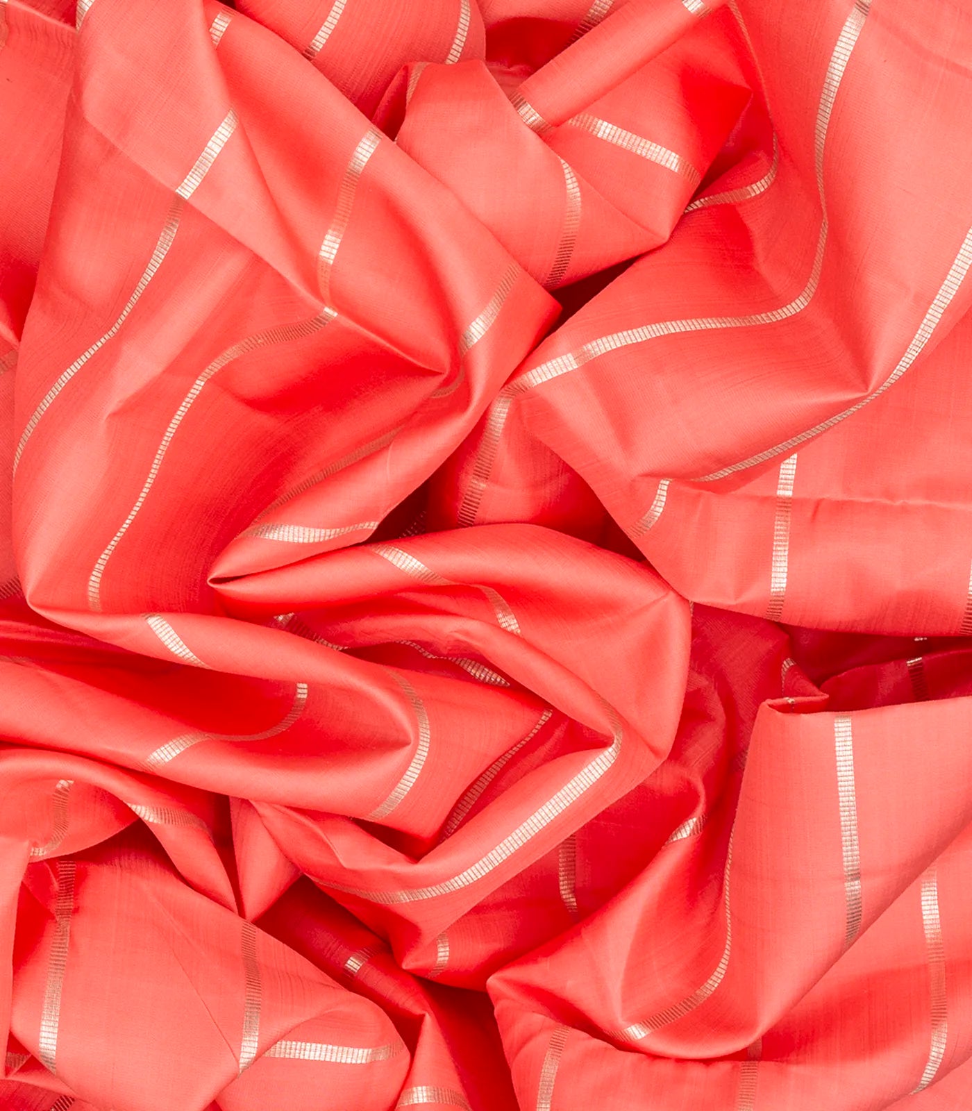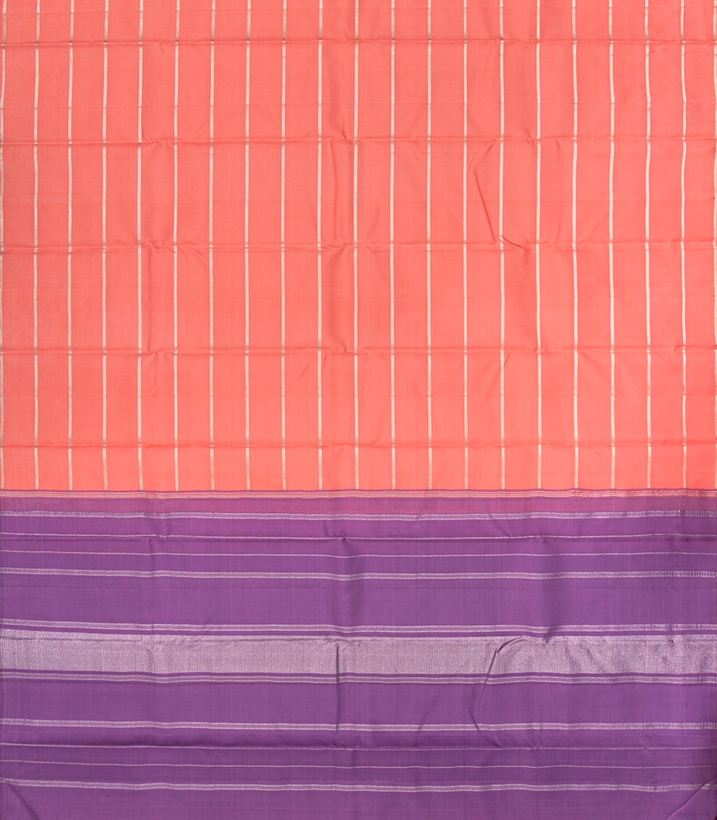 Peach Handloom Kanchipuram Silk Saree With Zari Stripes-Peach