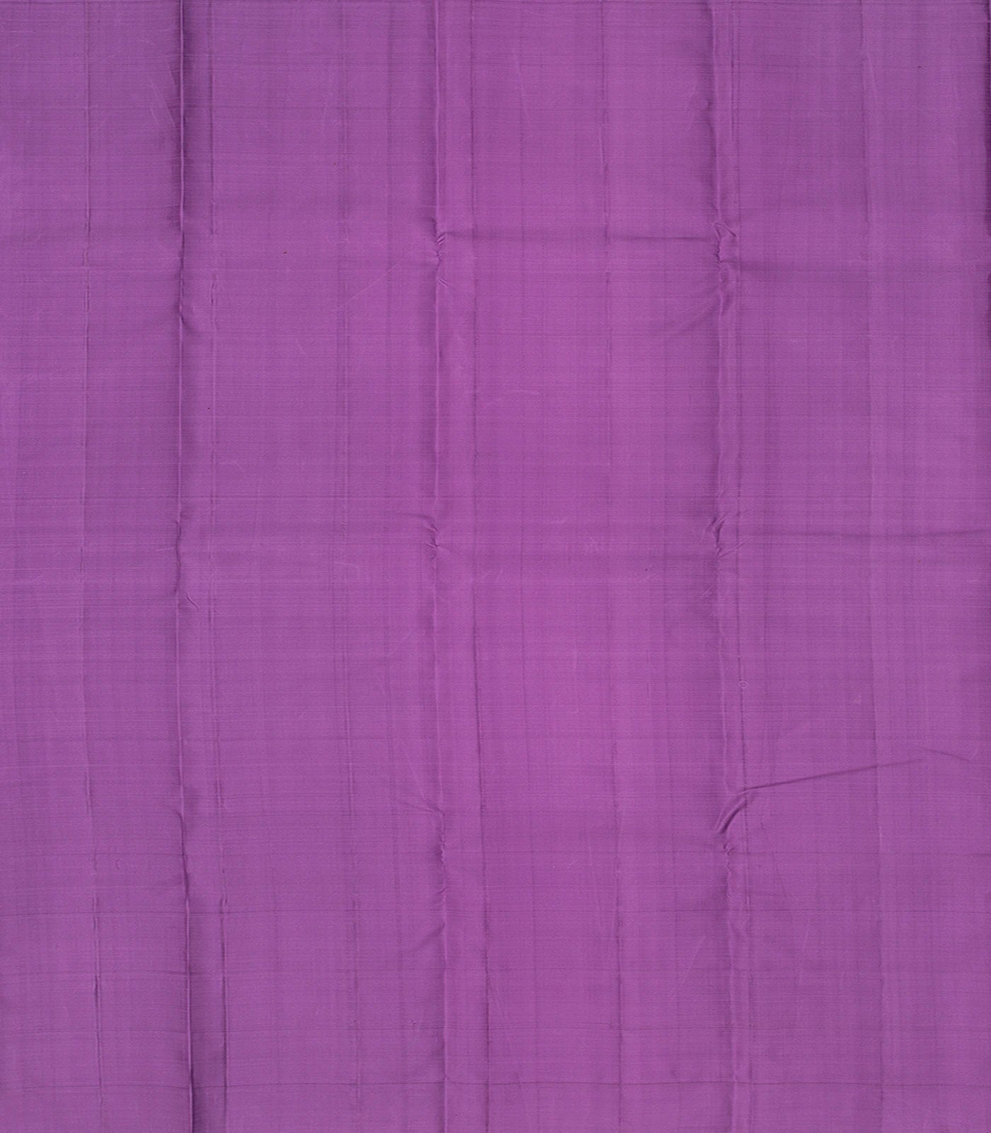 This handloom kanchipuram silk saree is filled zari stripes in peach body along with contrast lilac pallu