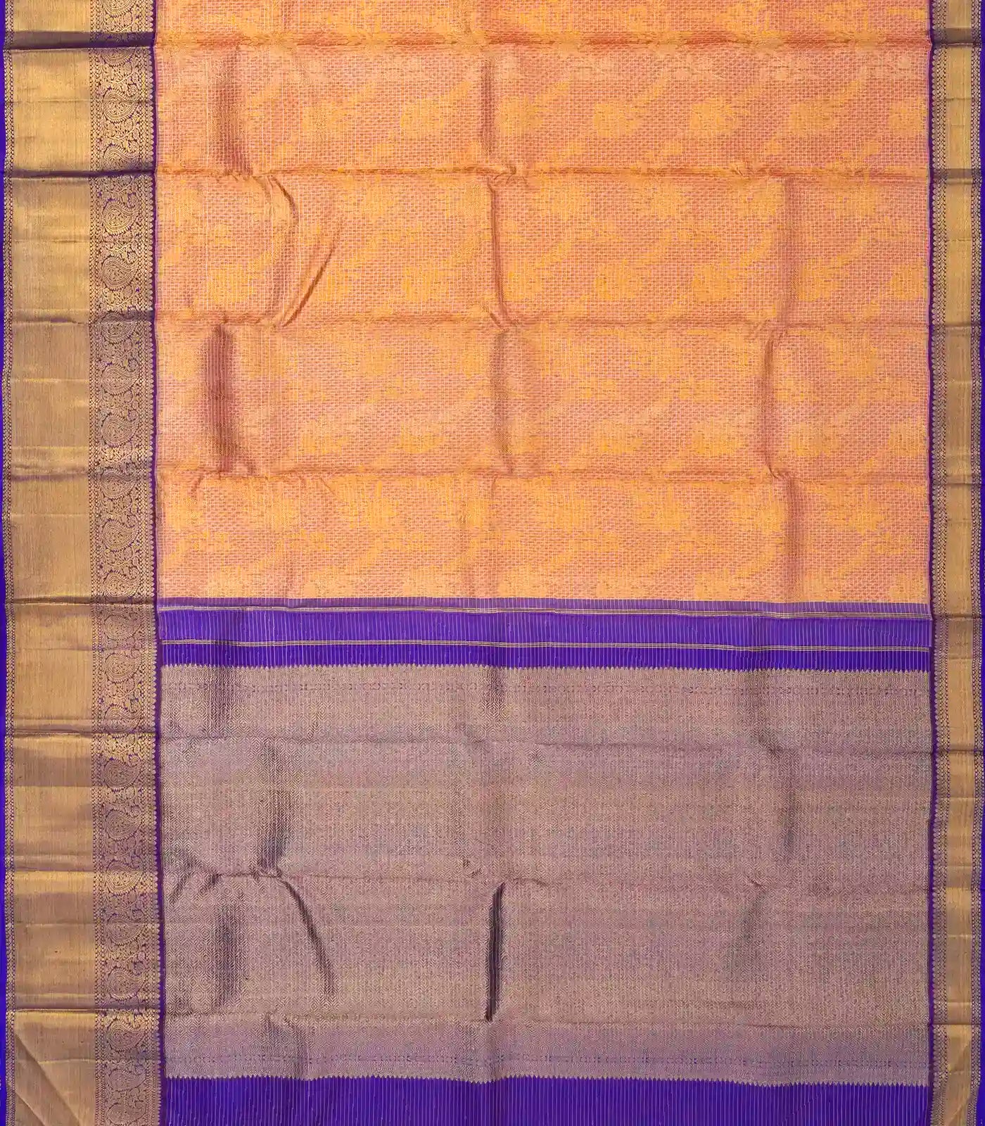 Peach Handloom Korvai Kanchipuram Silk Saree With Checks & Motifs-KA12266
