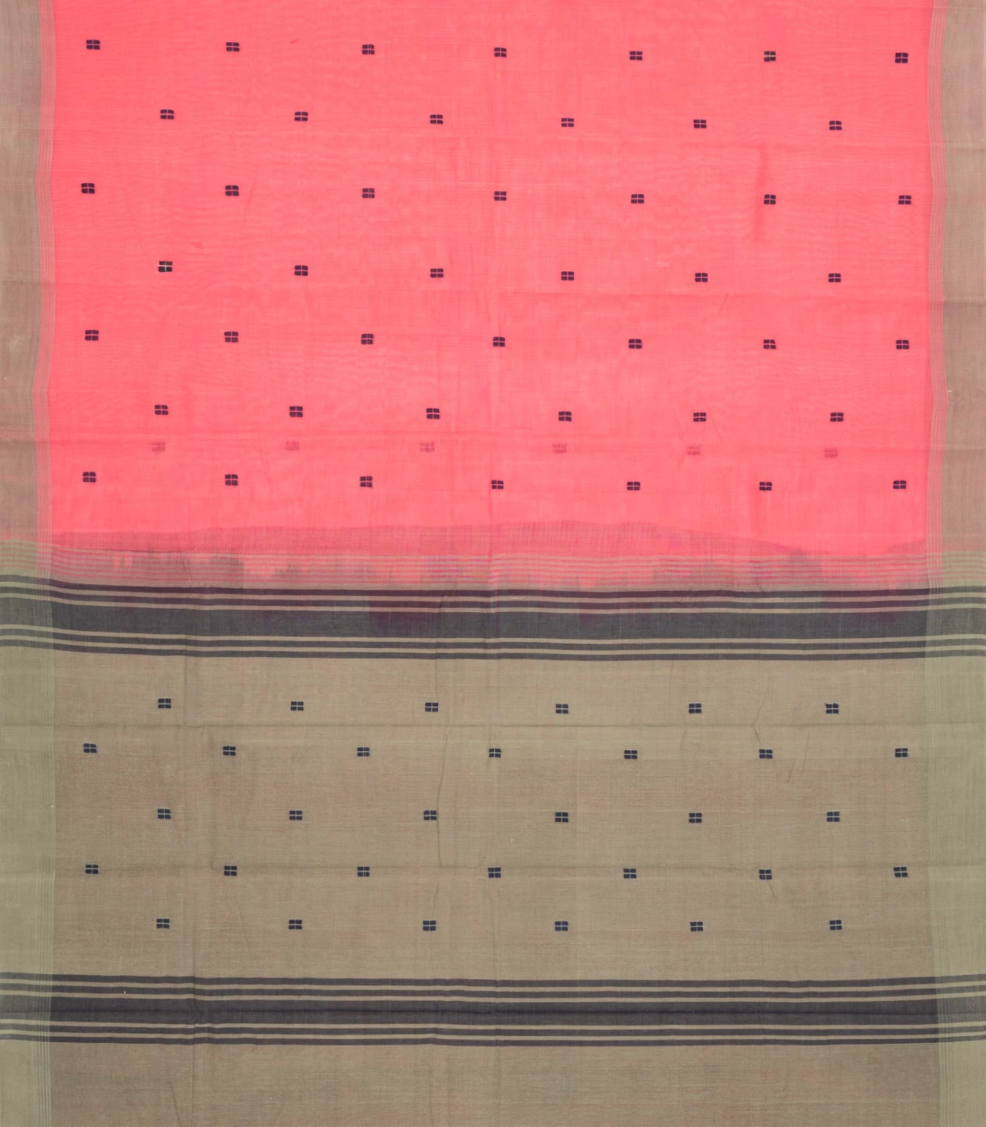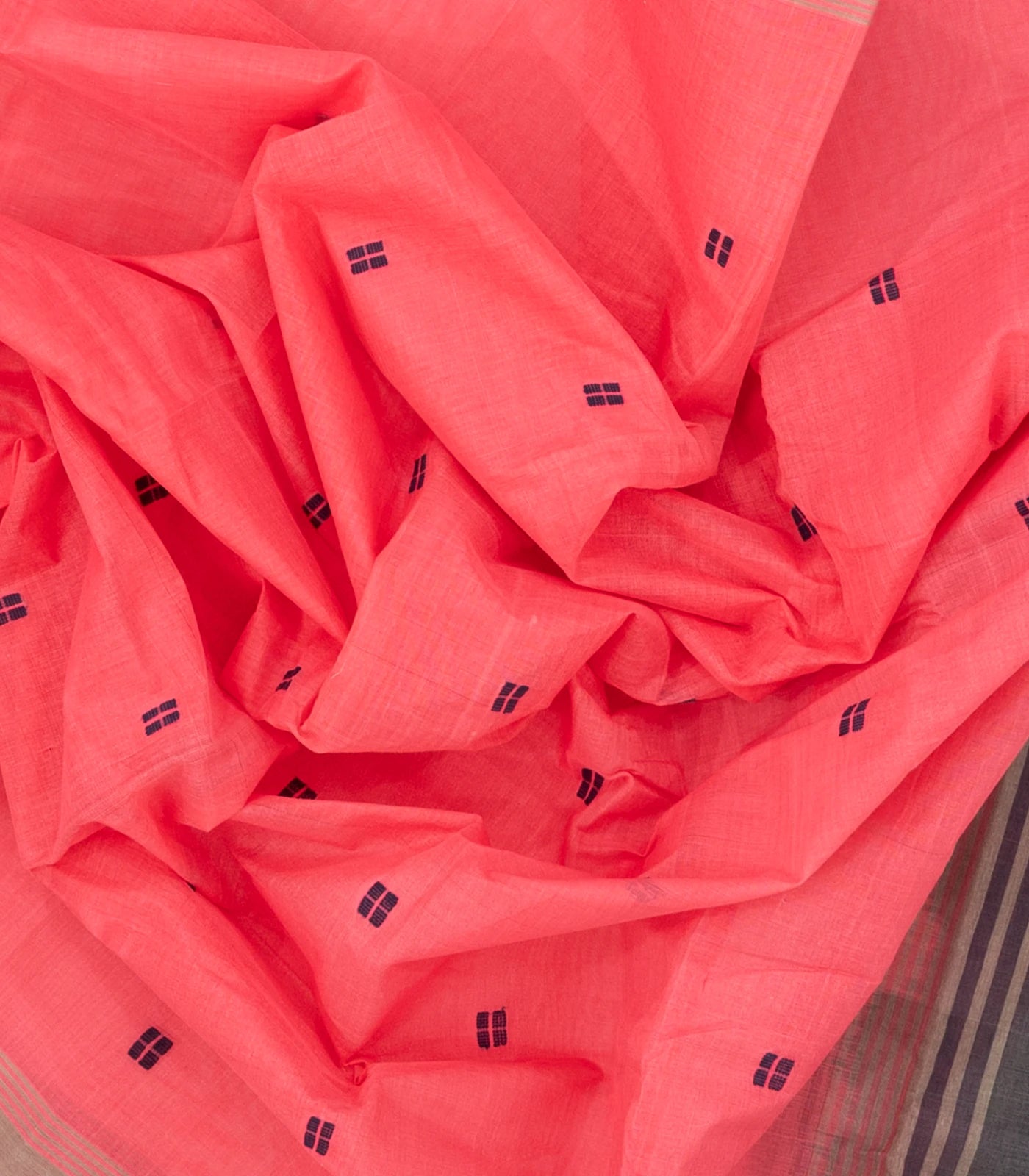 Peach Handloom Rasipuram Cotton Saree With Square Buttas-RA2408