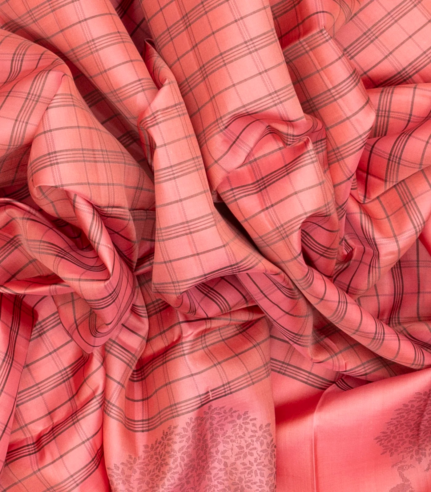 Peach Handloom Soft Silk Saree With Checks & Buttas