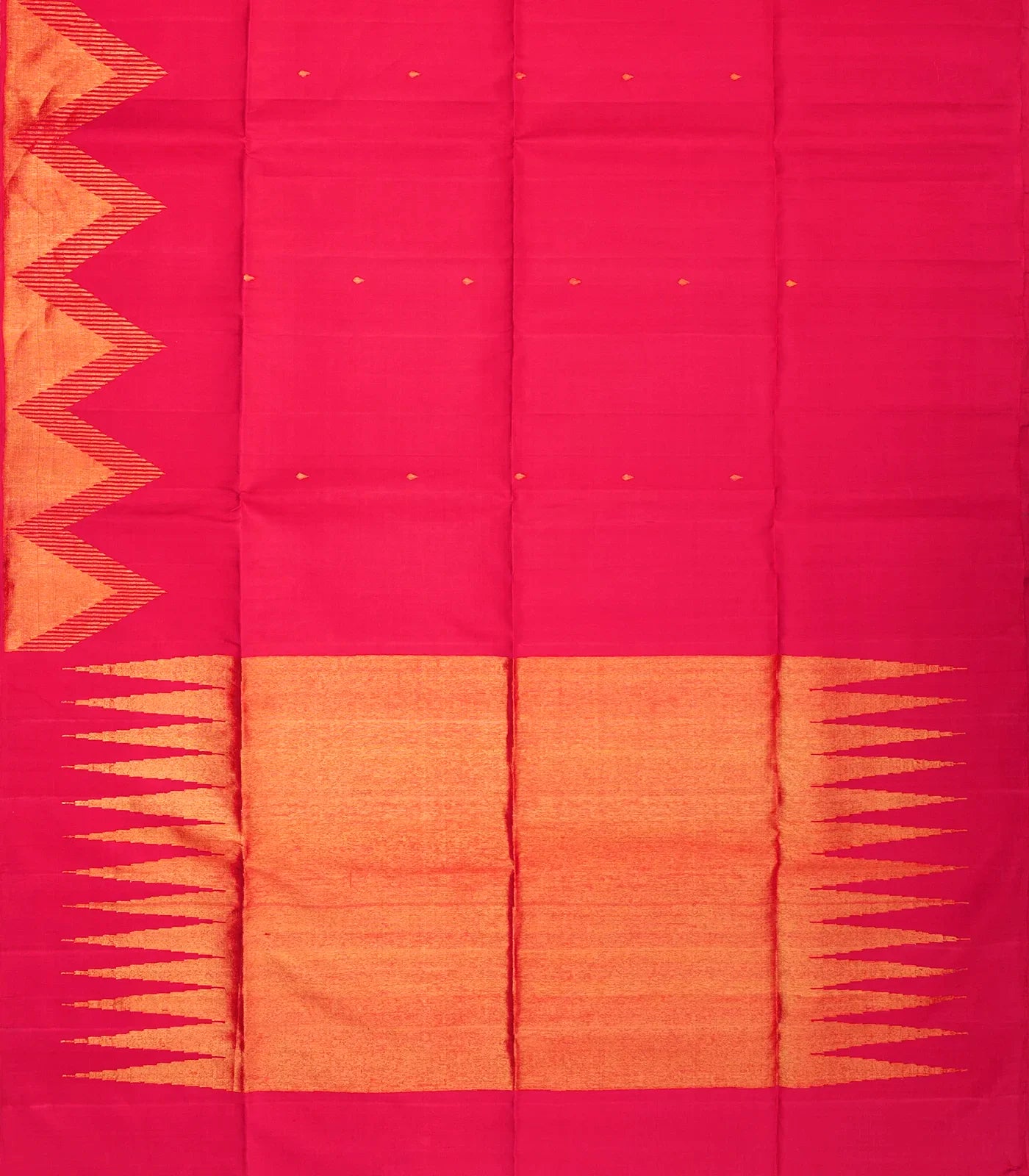 This handwoven soft silk saree is filled with diamond motifs in peach body along with zari temple border and pallu