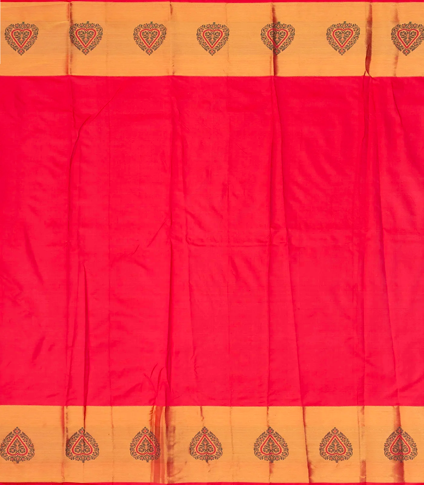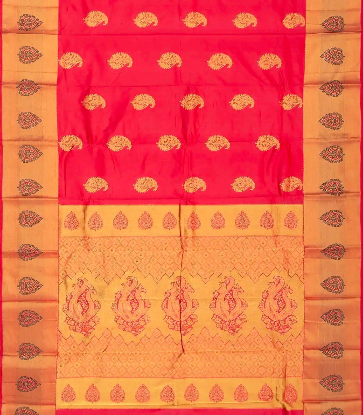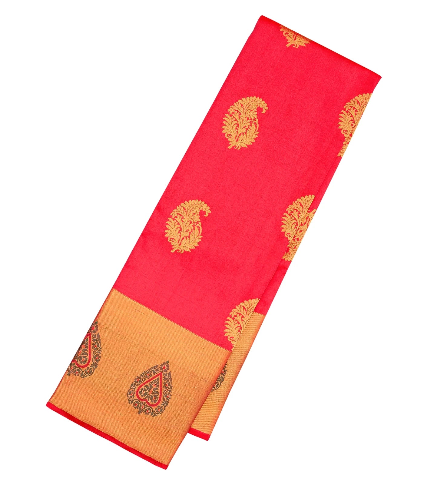 Peach Silk Saree With Mango Buttas & Meena Border-EC2474