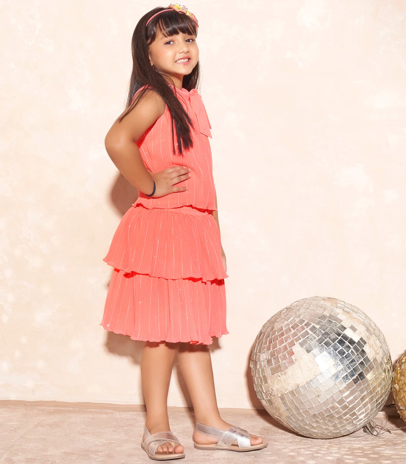 Peach Western Party Wear Kids Dress