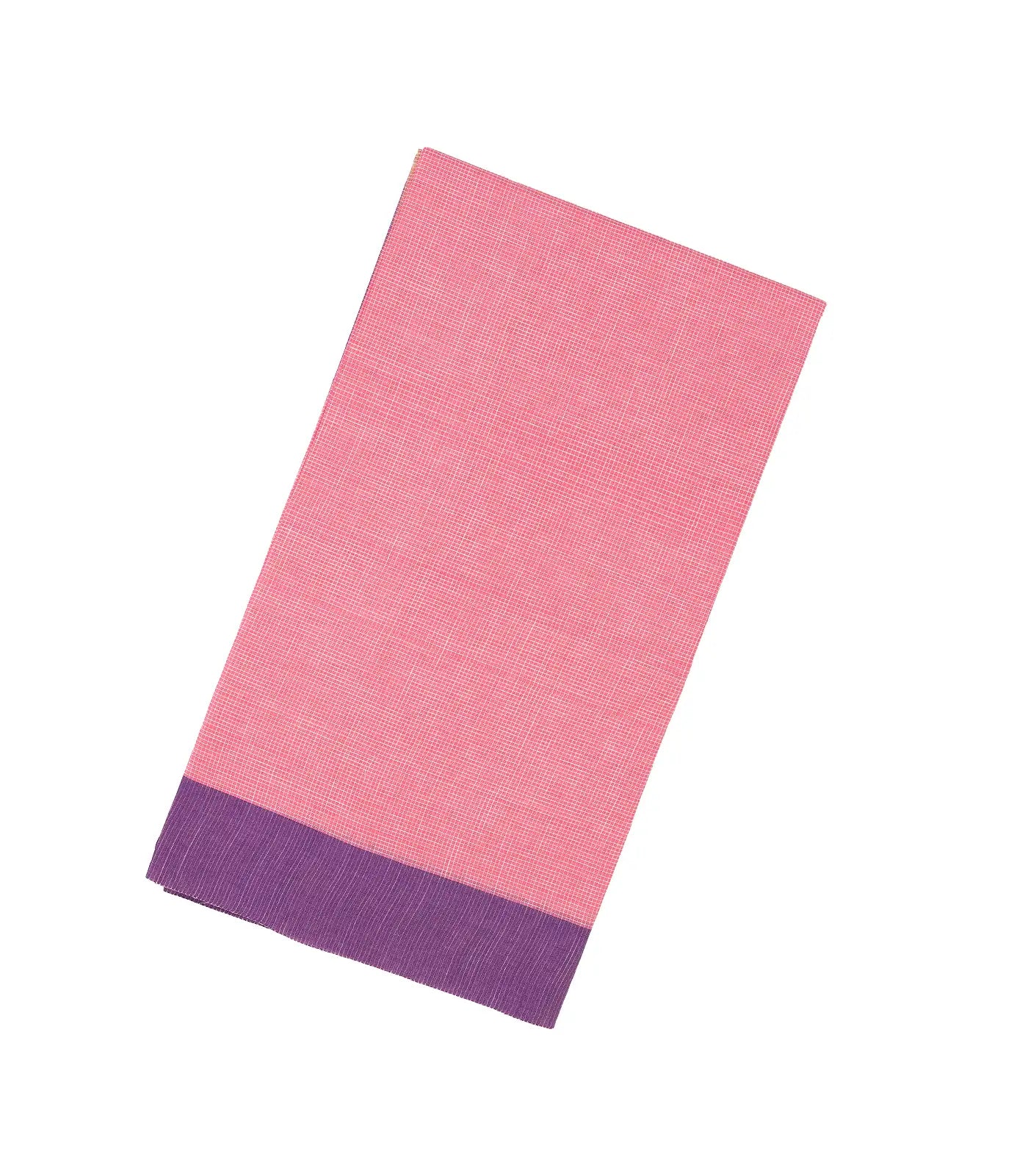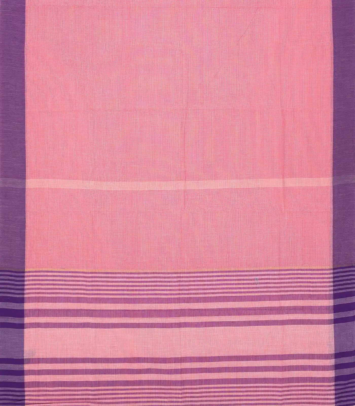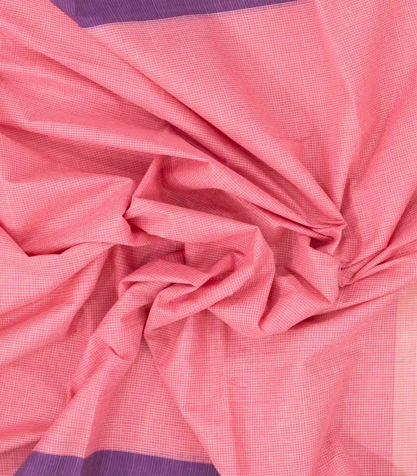 This woven chirala cotton saree is filled with checks in peach body along with contrast purple border and pallu