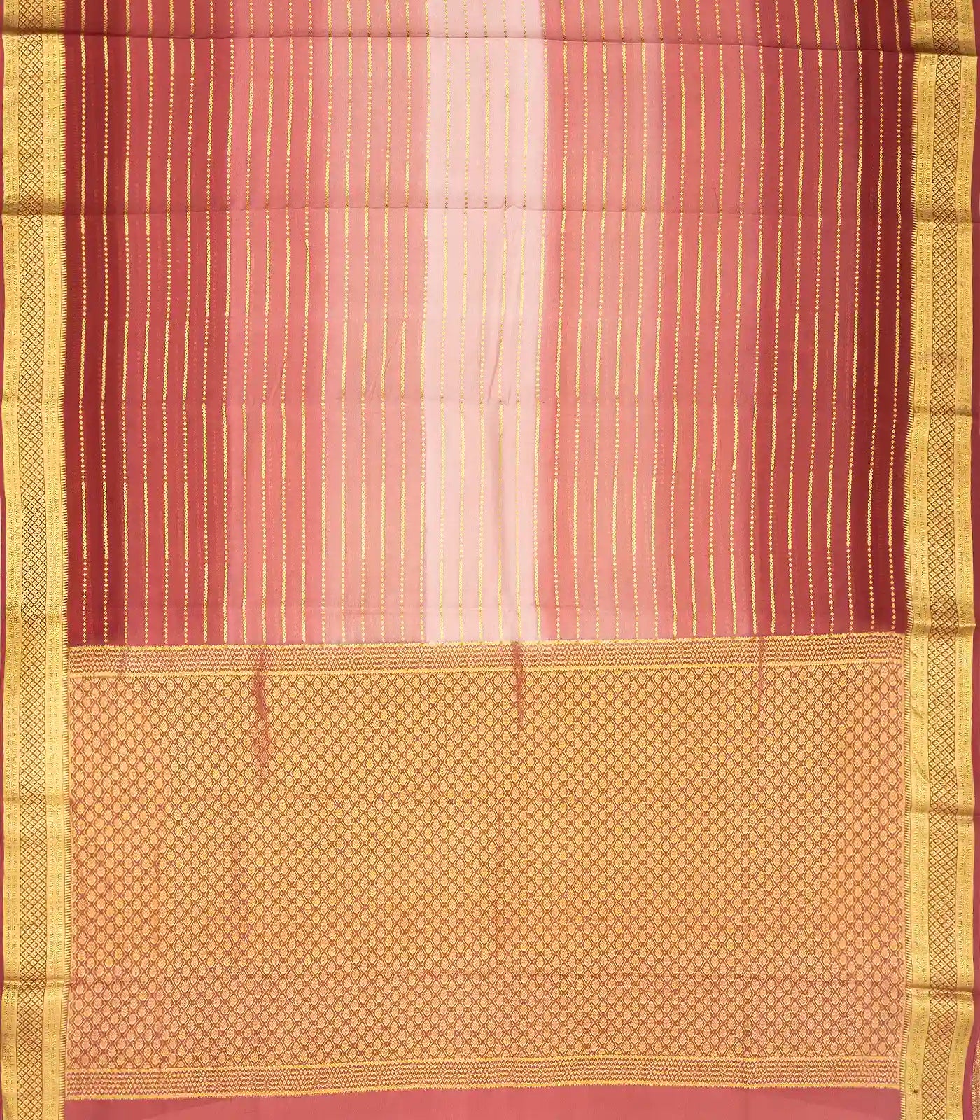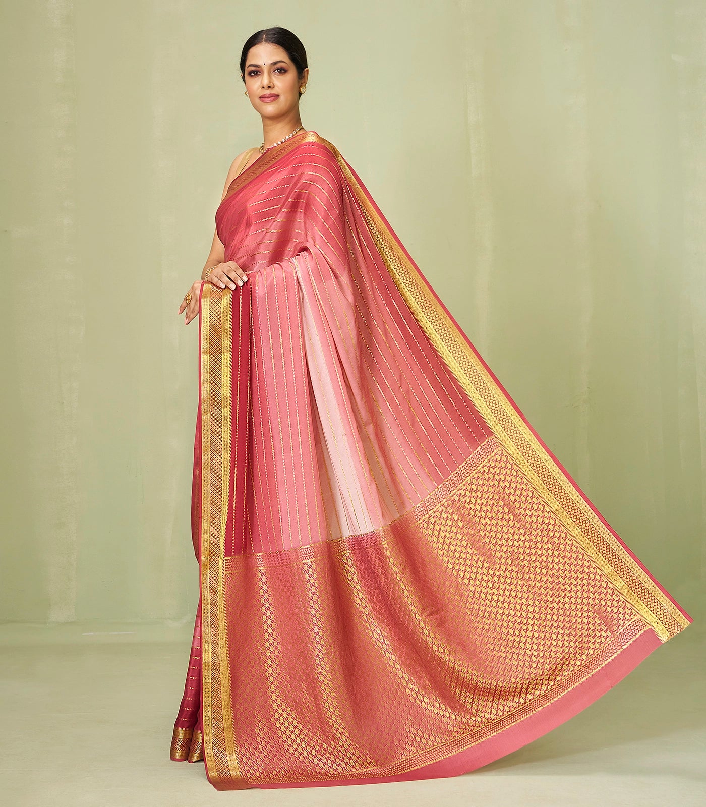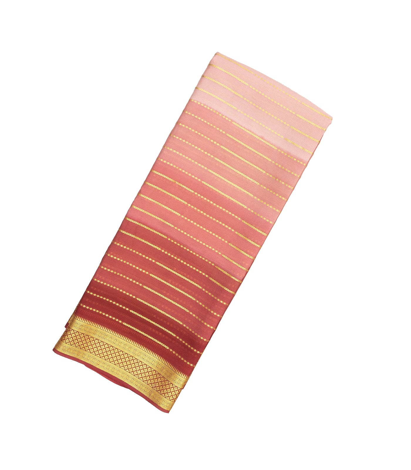 Peach Woven Mysore Crepe Silk Saree With Ombre Dyeing & Zari Stripes-MS3133