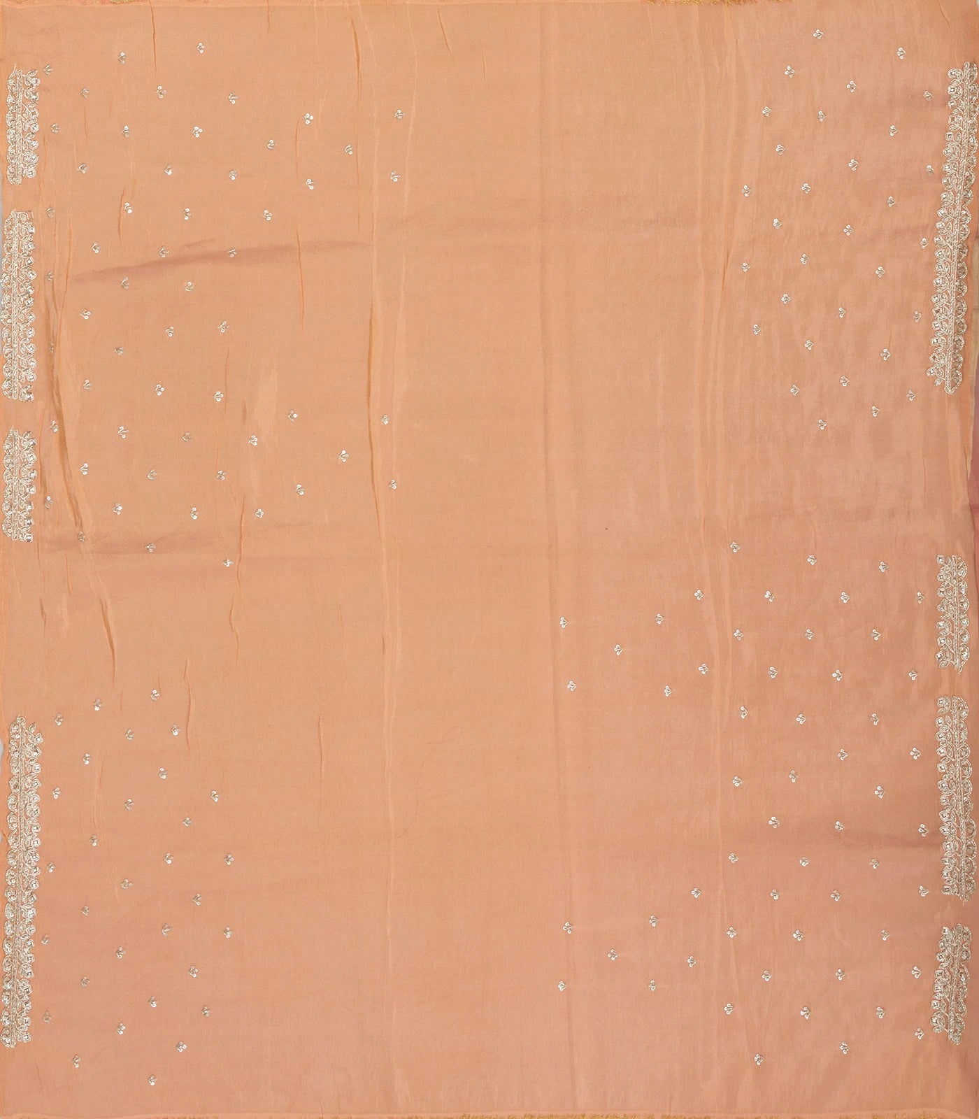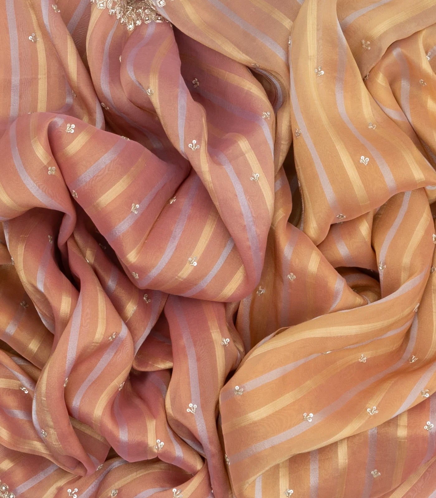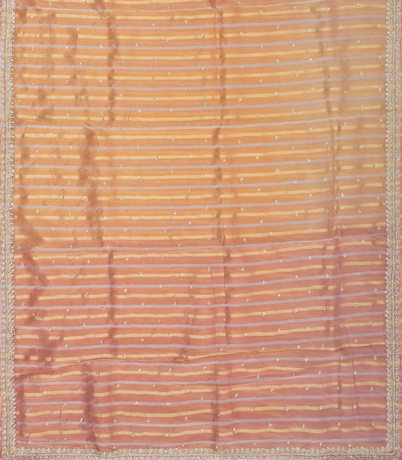 Peach Woven Organza Tissue Saree With Brocaded Stripes & Embroidery-EN1678