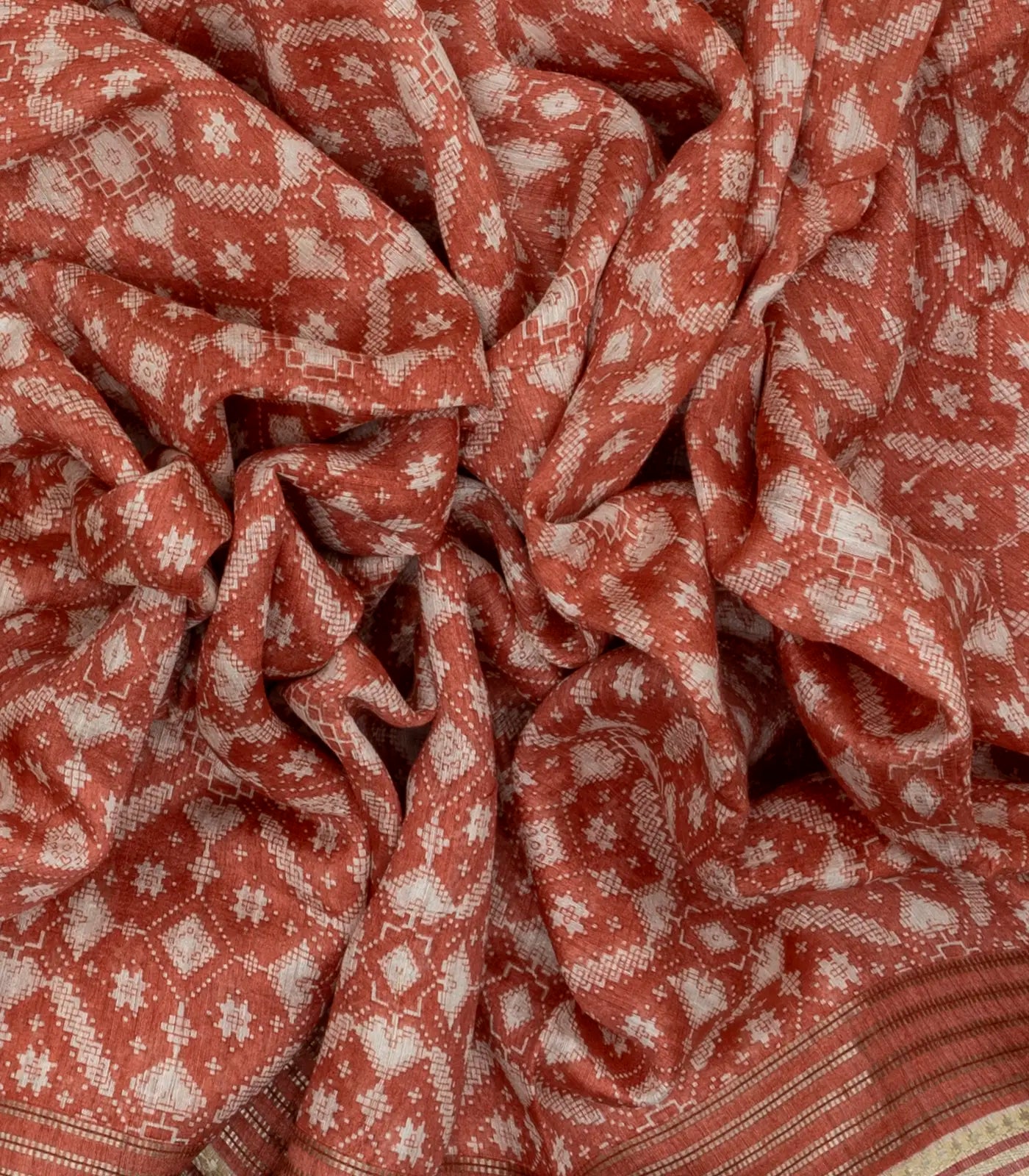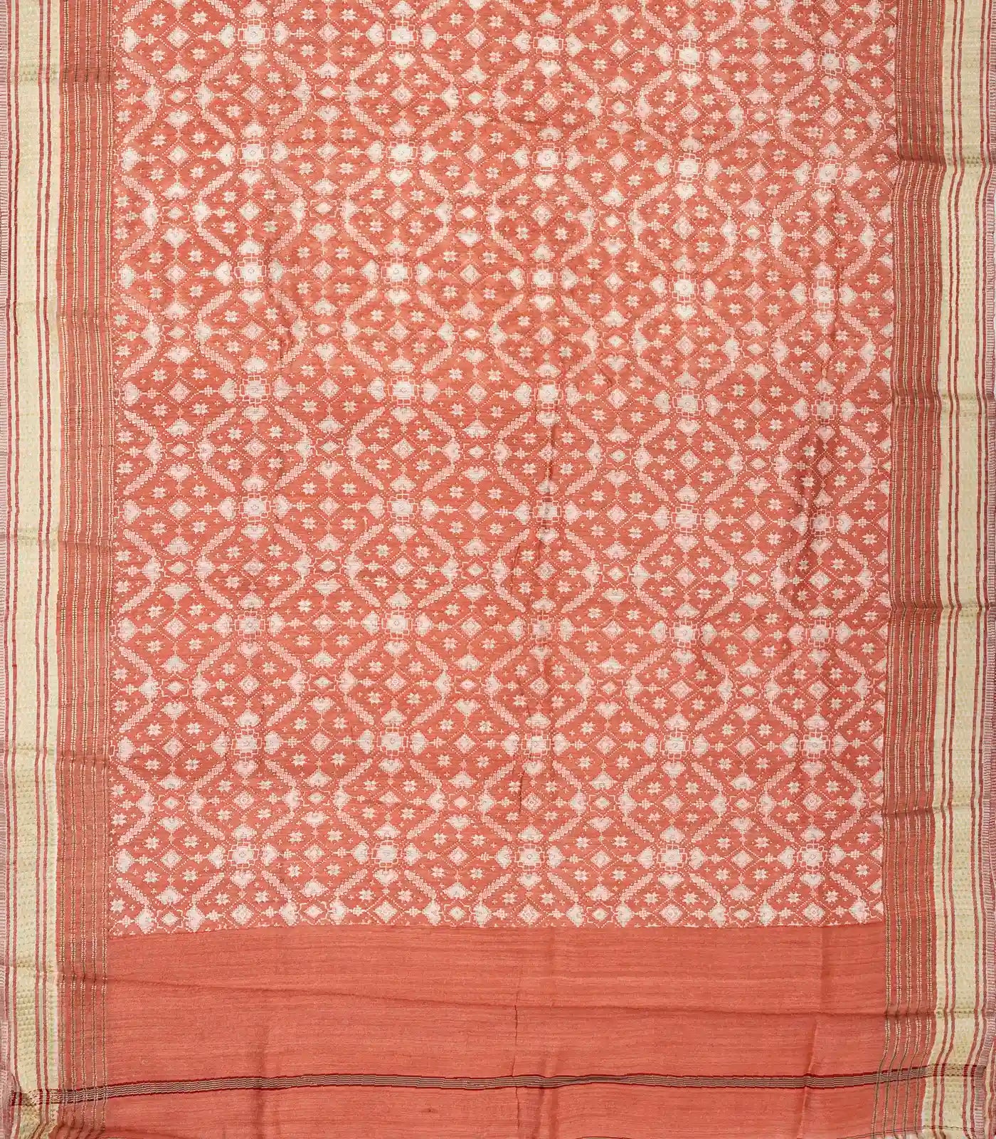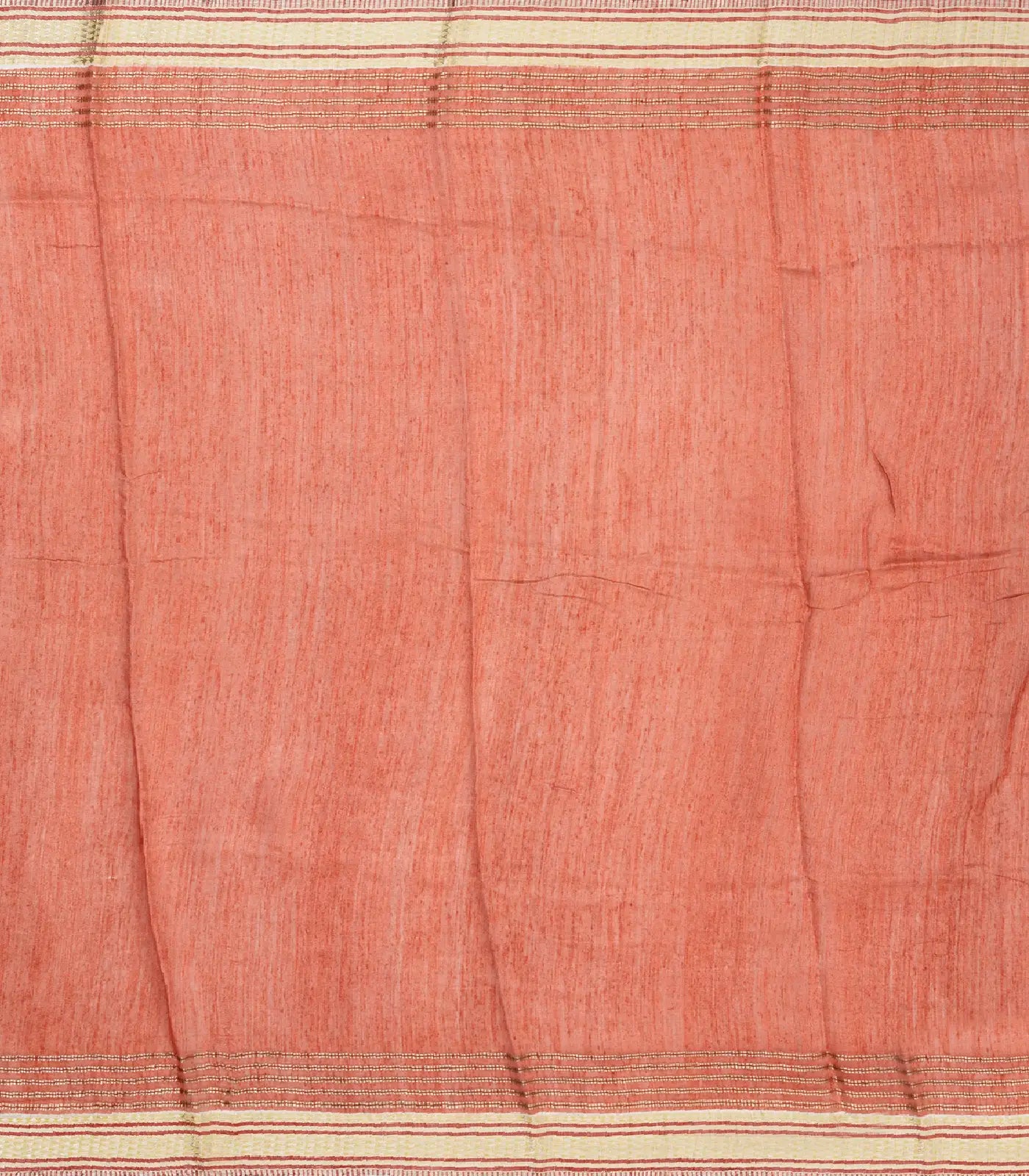Peach Woven Tussar Silk Saree With Printed Floral Motifs