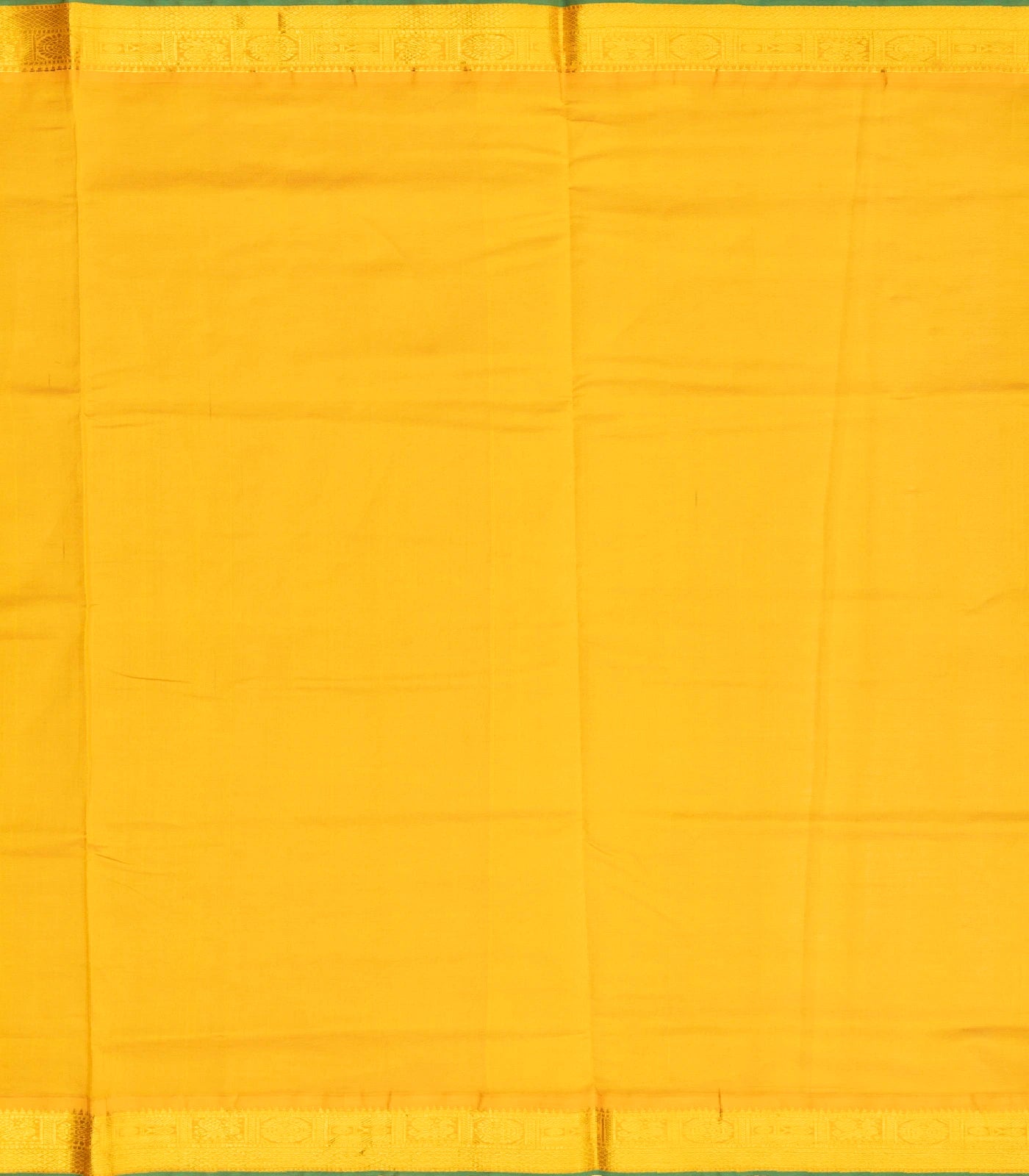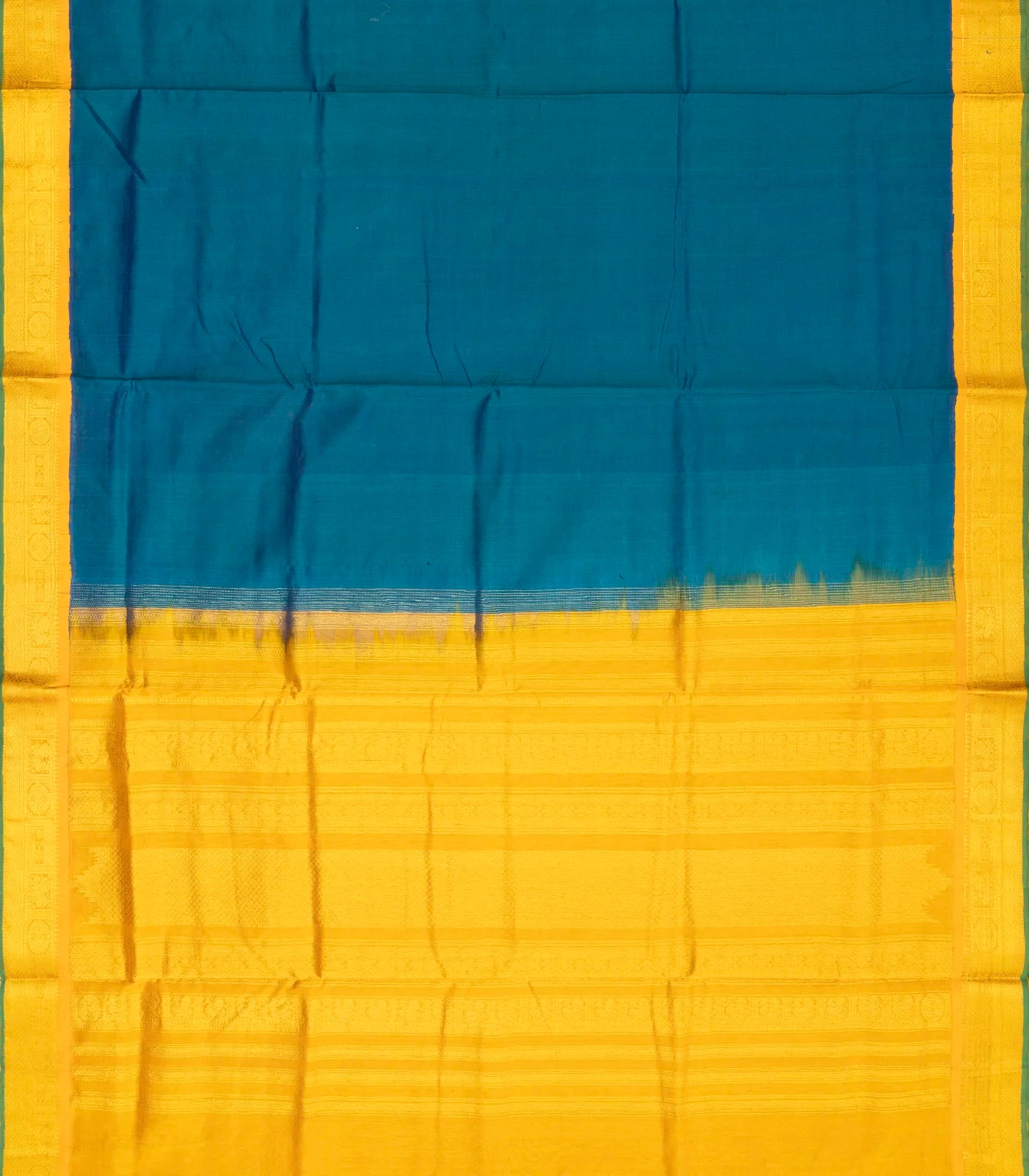 This handwoven korvai silk cotton saree is filled with plain peacock blue body along with contrast border and pallu