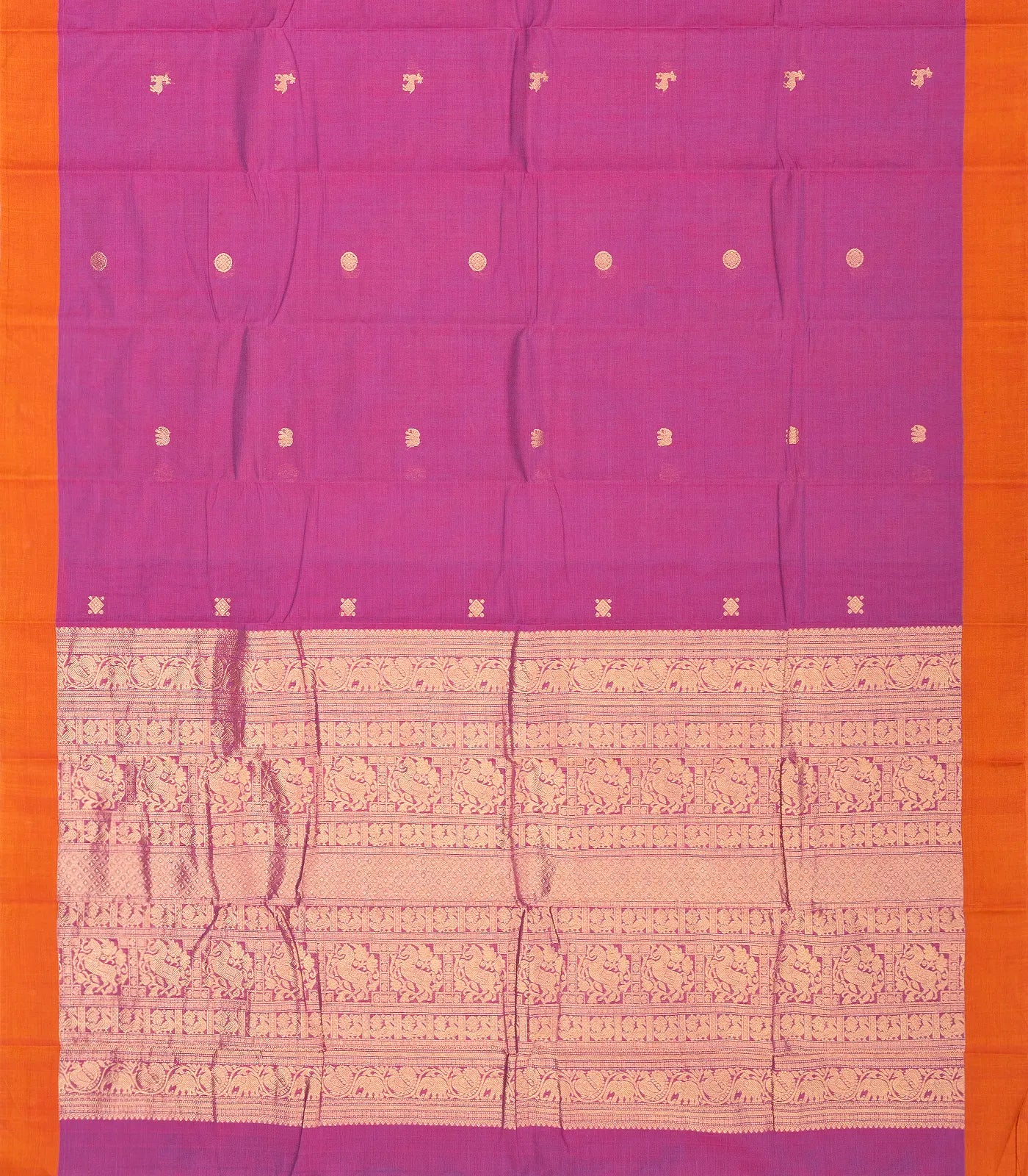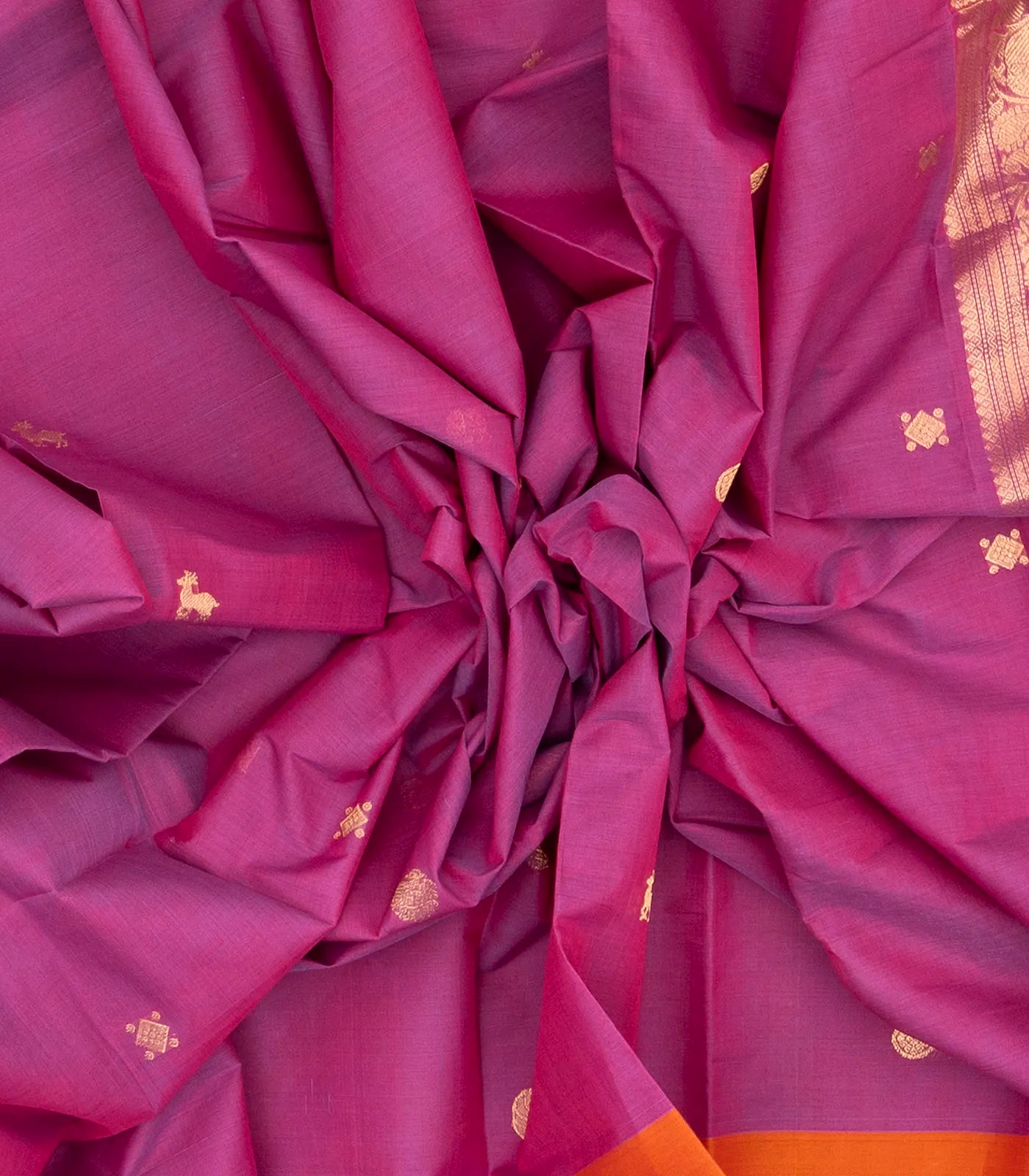 Pink Handloom Kanchi Cotton Saree With Elephant Buttas-KC1447