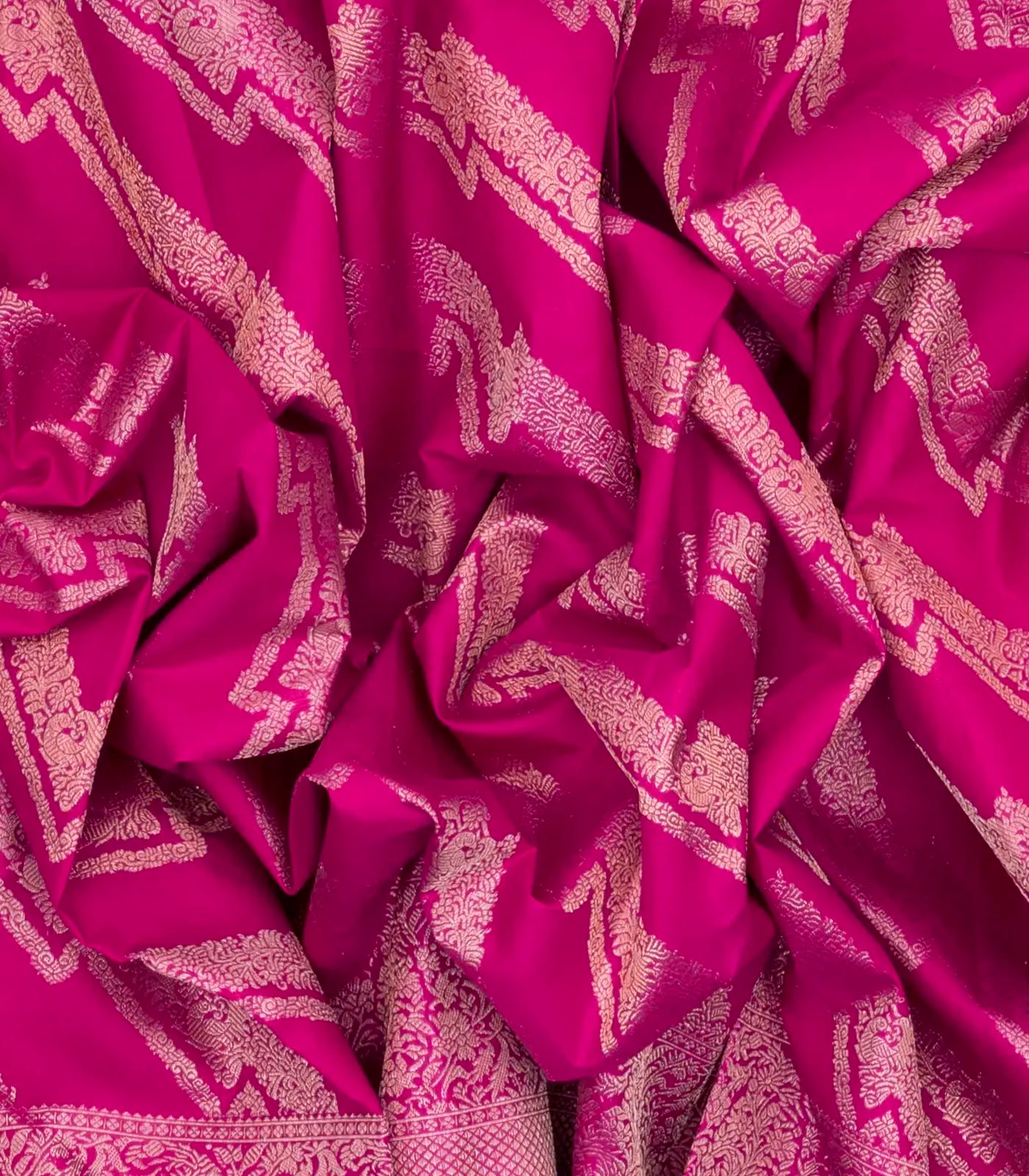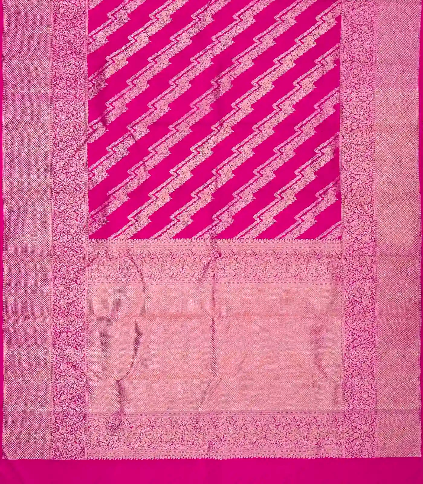 Pink Handloom Kanchipuram Silk Saree With Diagonal Stripes
