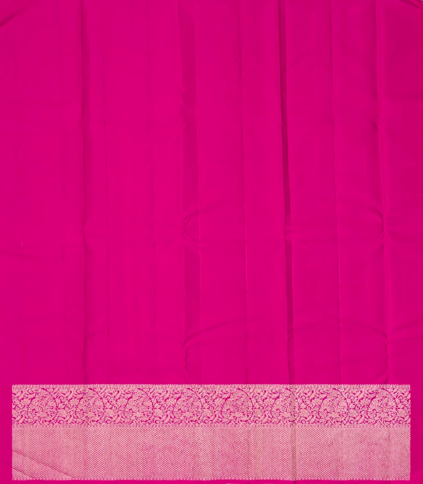 This handwoven kanchipuram silk saree is filled with peacock motifs in pink body along with running zari border and pallu