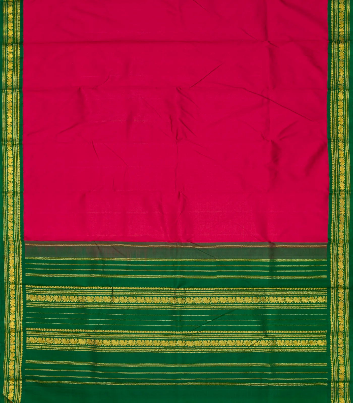 Pink Handloom Korvai Kanchipuram Silk Saree With Green Border