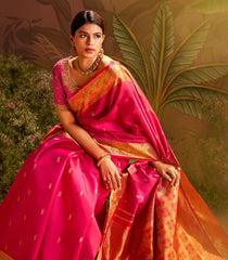Pink Handloom Silk Saree With Aishwarya Pookal In Pallu