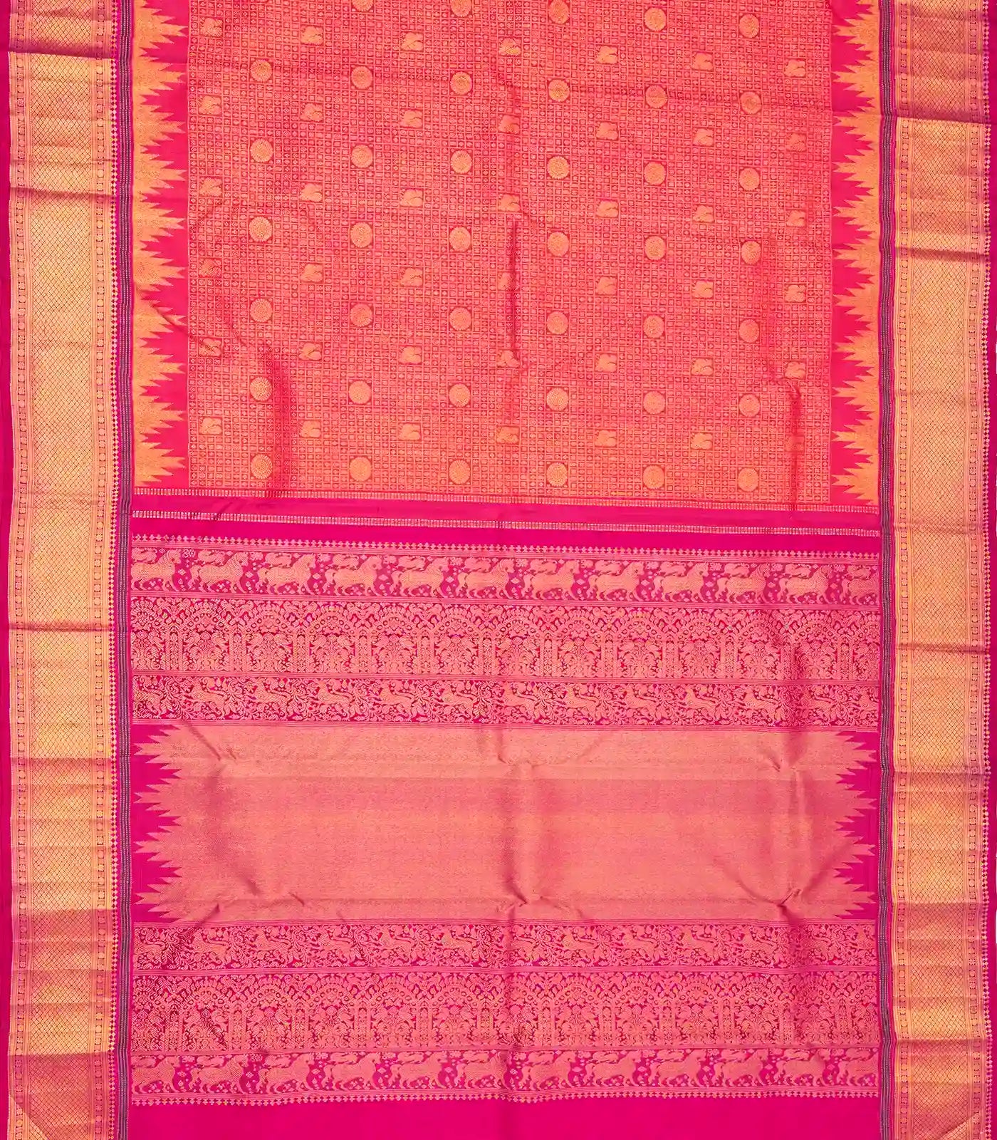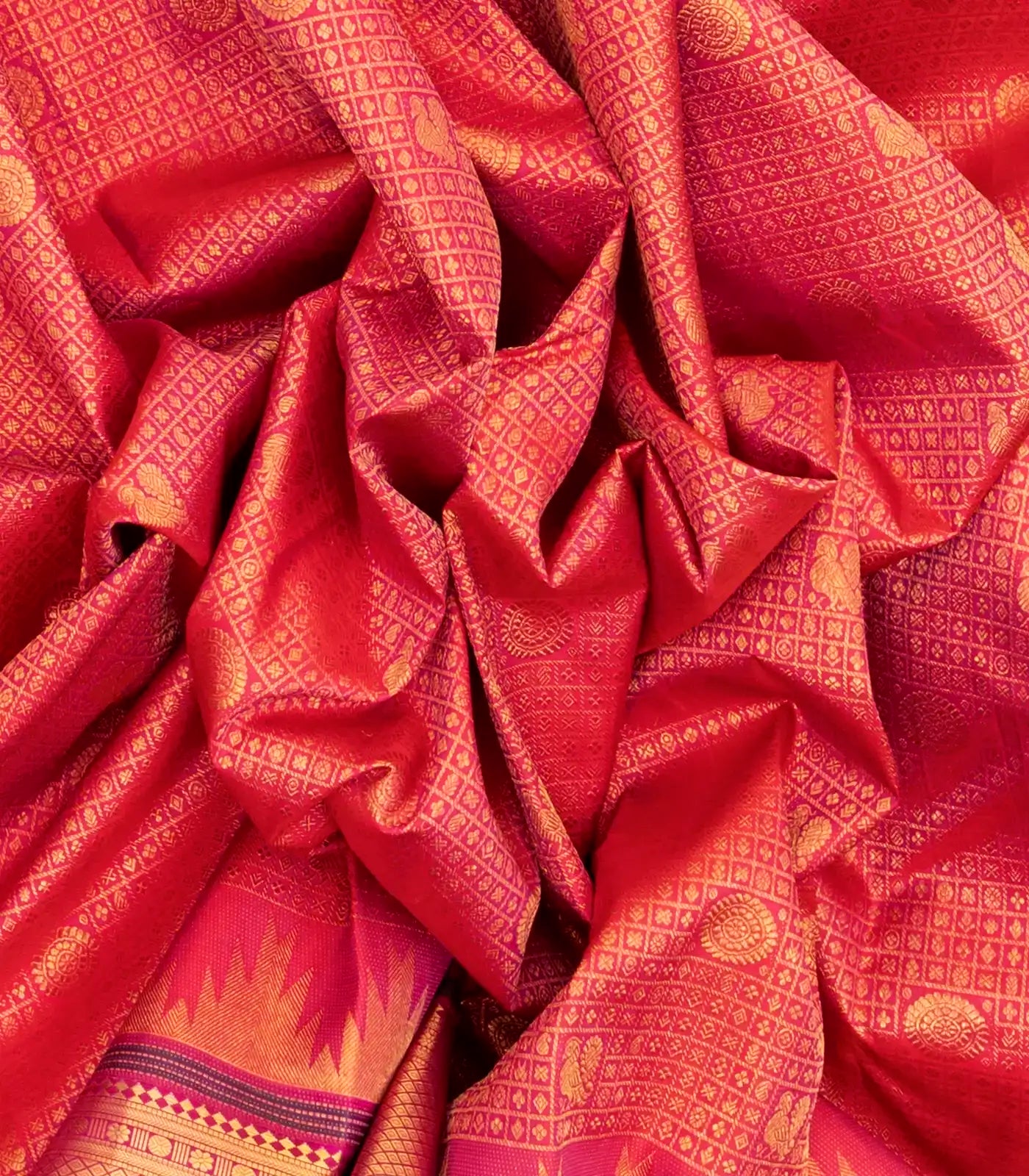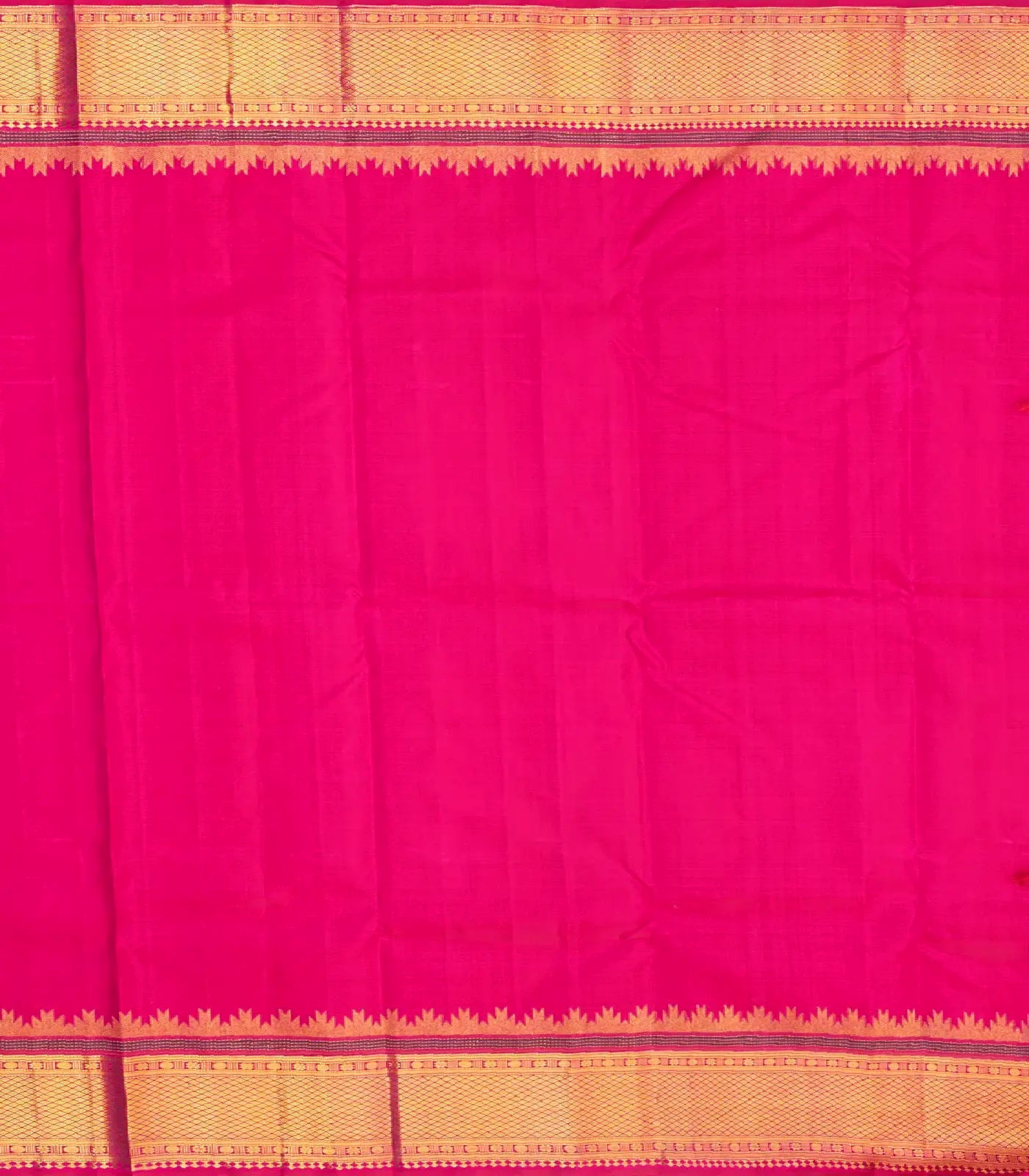 The pallu further enhances the saree’s divine appeal, showcasing an array of motifs